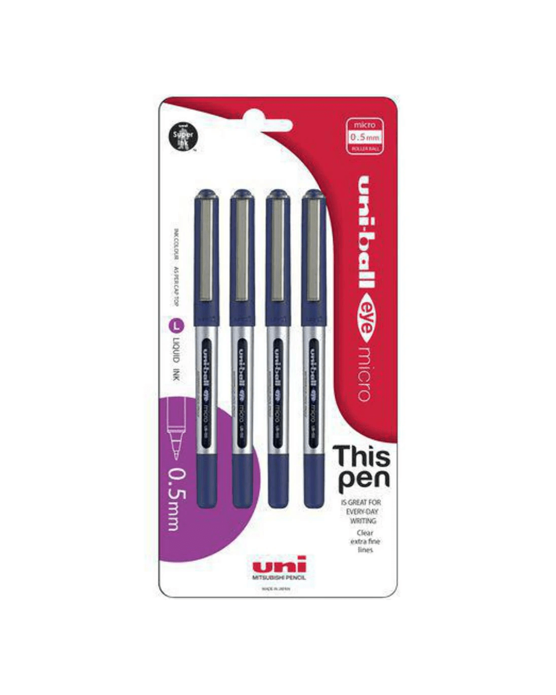 Sold by OfficeworksUni-Ball Eye Micro Rollerball Pens Blue 4 Pack