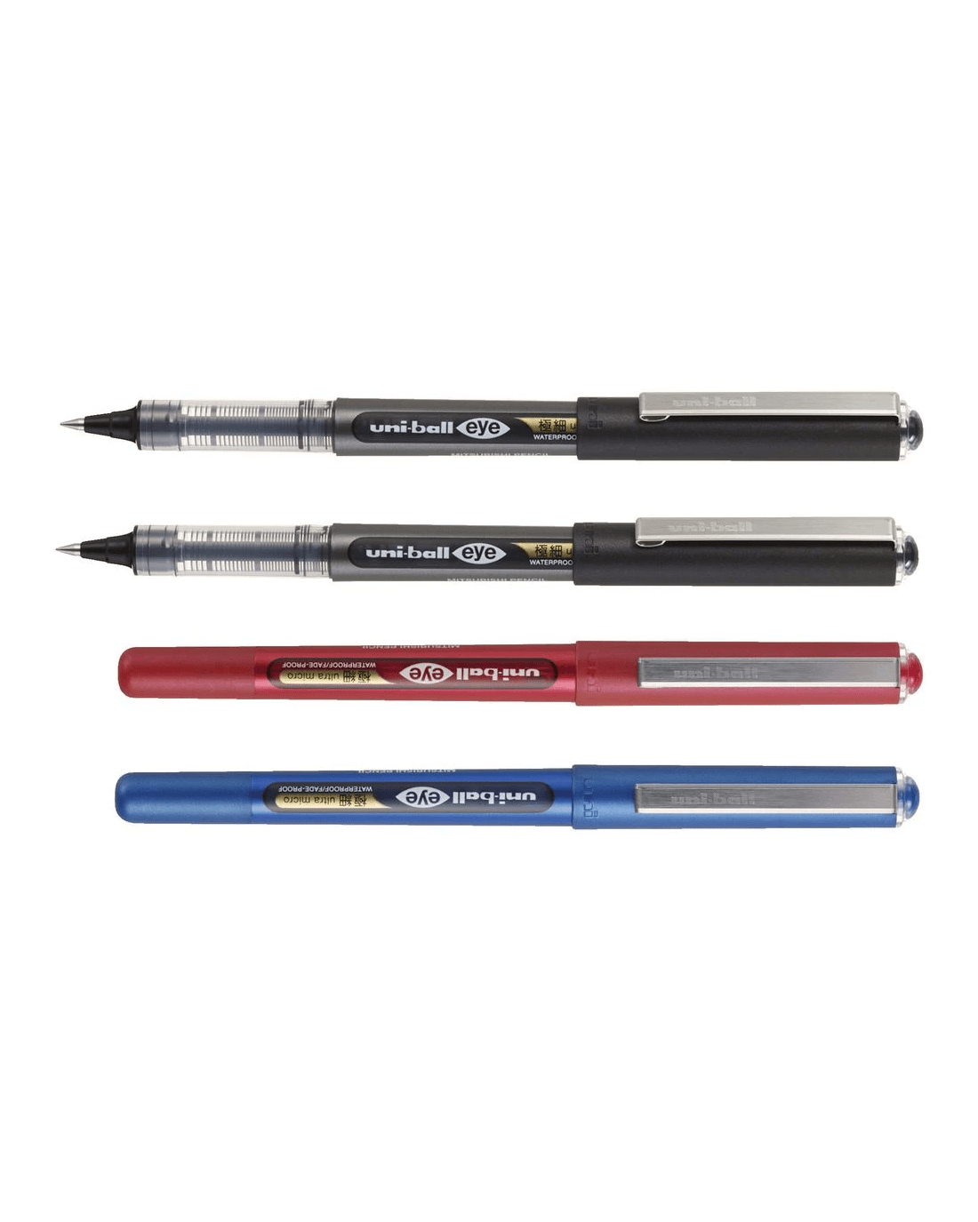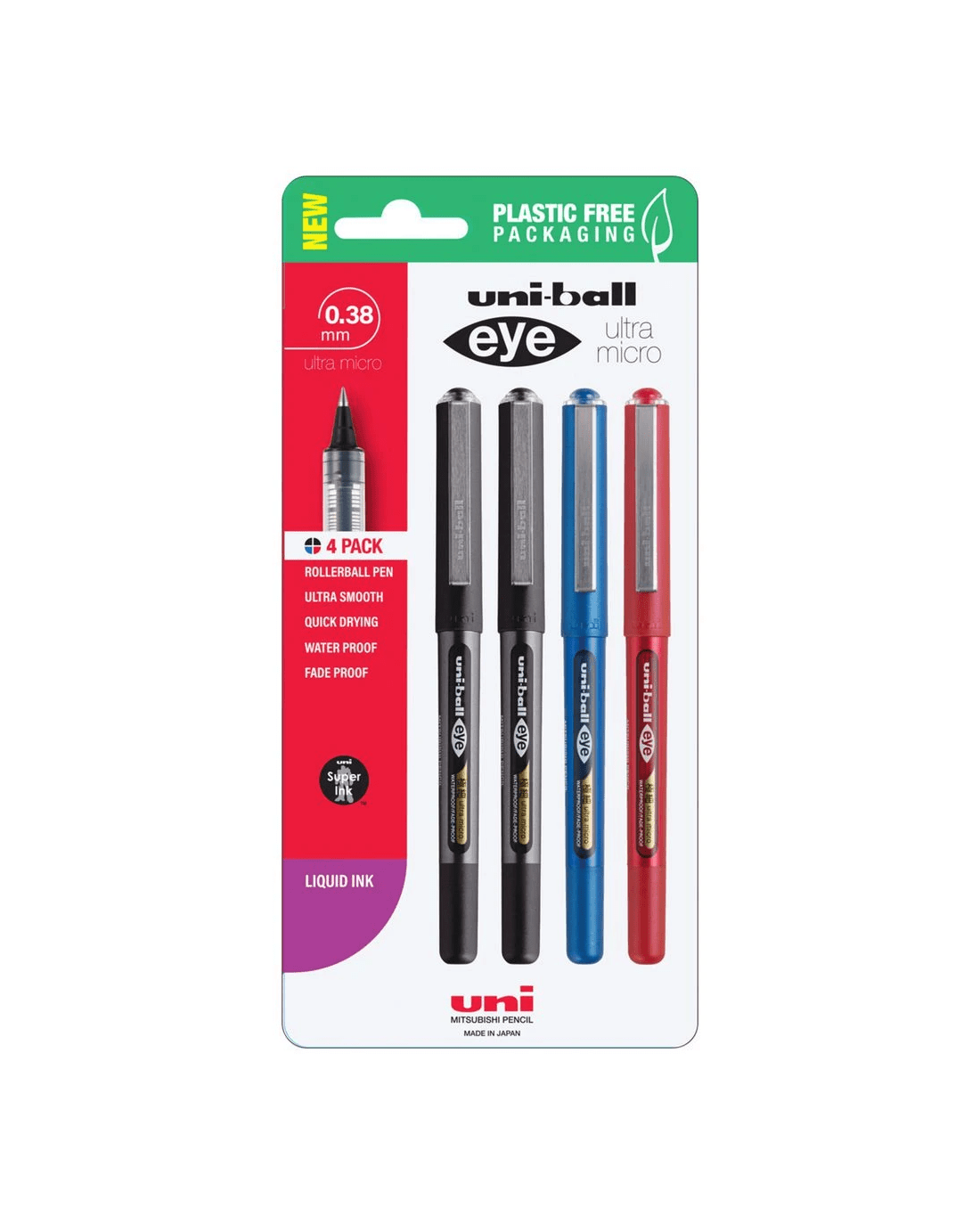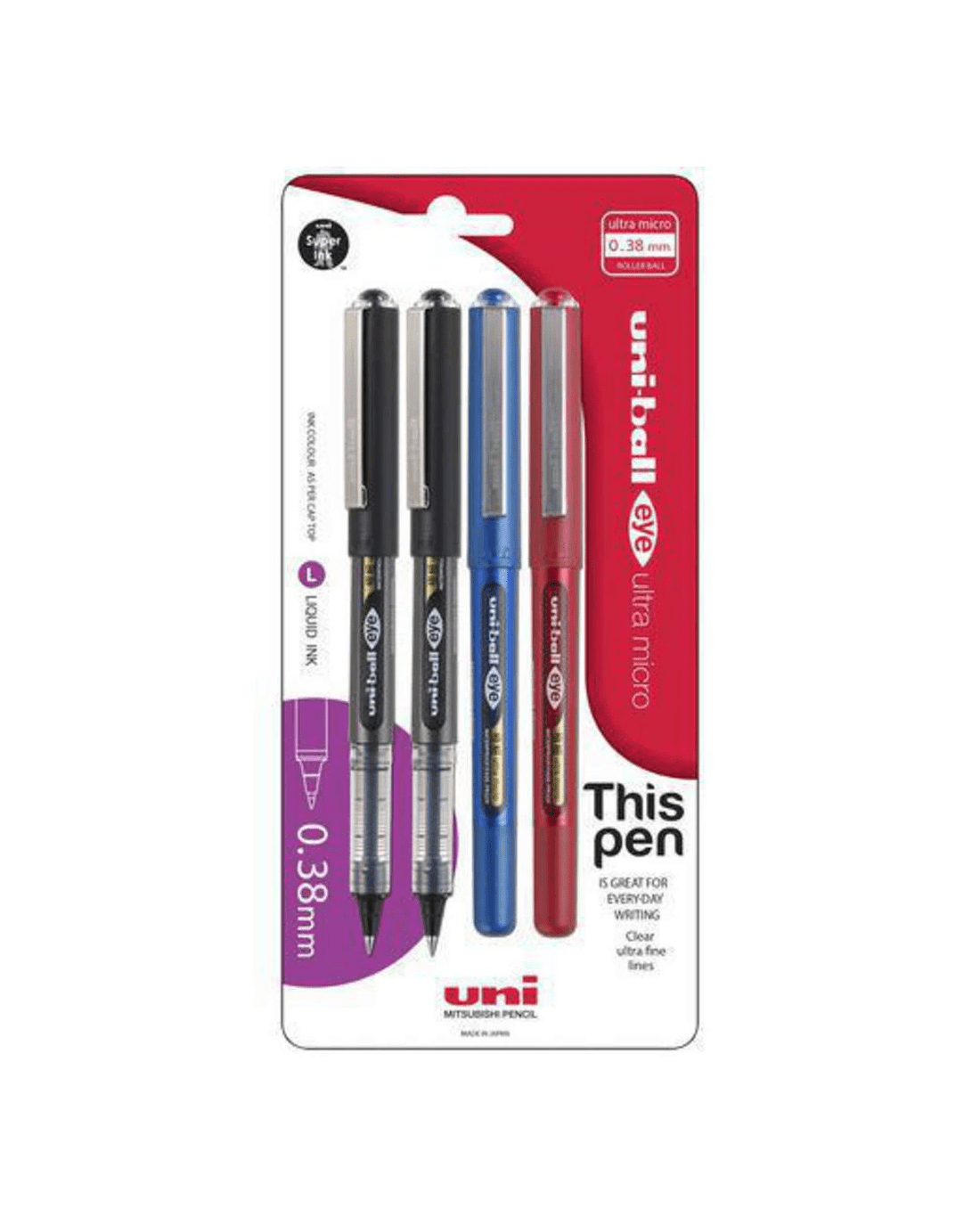 Sold by OfficeworksUni-Ball Eye Rollerball Pen 0.38mm Assorted 4 Pack