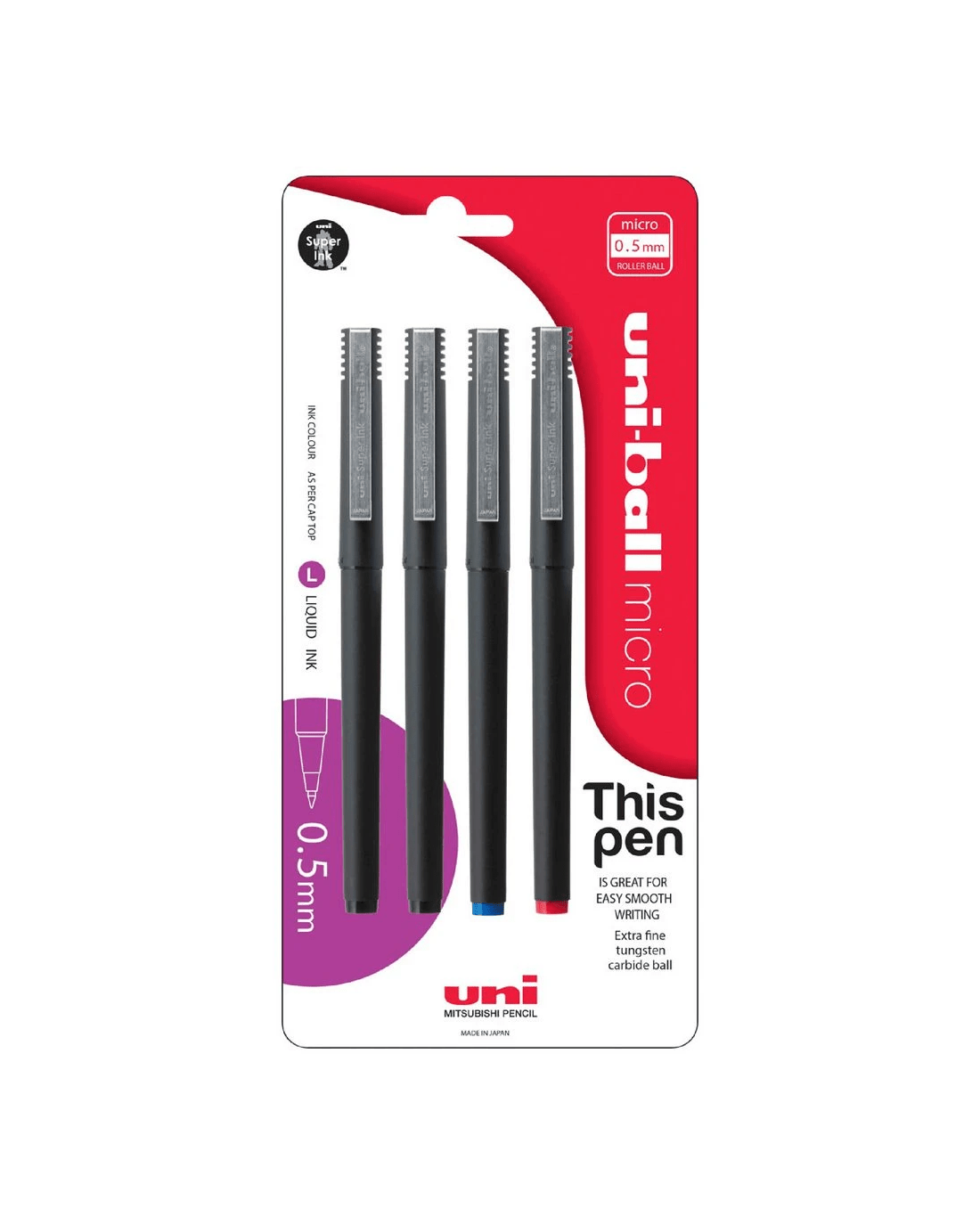- There are 4 pens in this pack in assorted colours.
