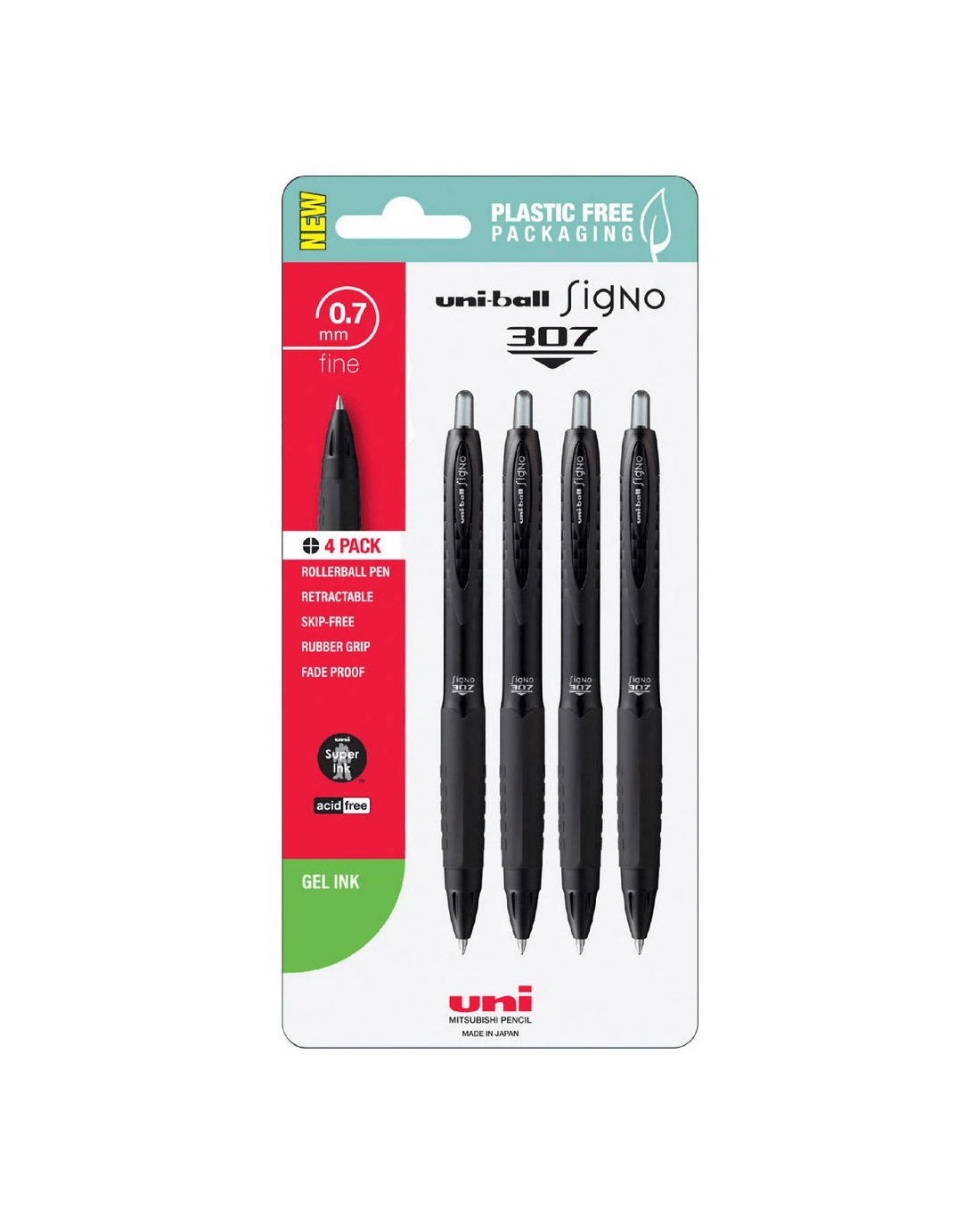 Uni-Ball Signo 307 Fine Retractable Gel Pens Black 4 Pack