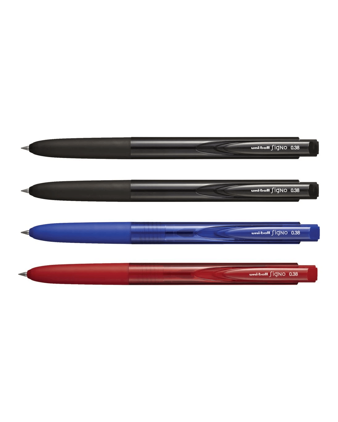 Sold by OfficeworksUni-Ball Signo RT1 Retractable Gel Pens 0.38mm Assorted 4 Pk