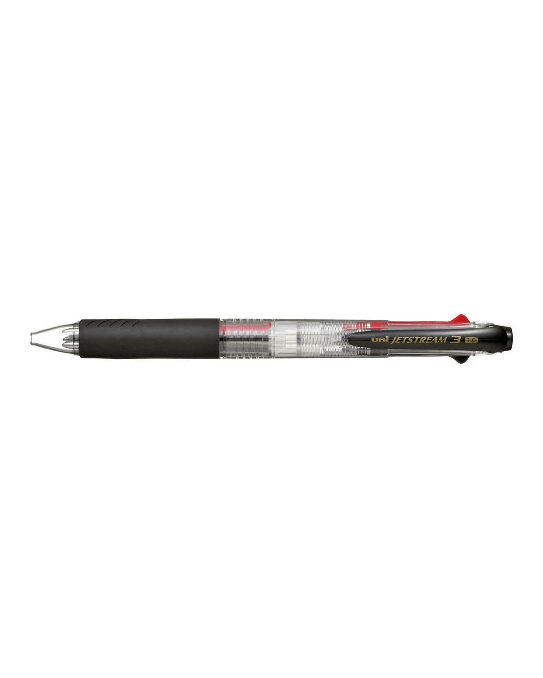 - The barrel is clear and contains 3 ink colours including black, red and blue.