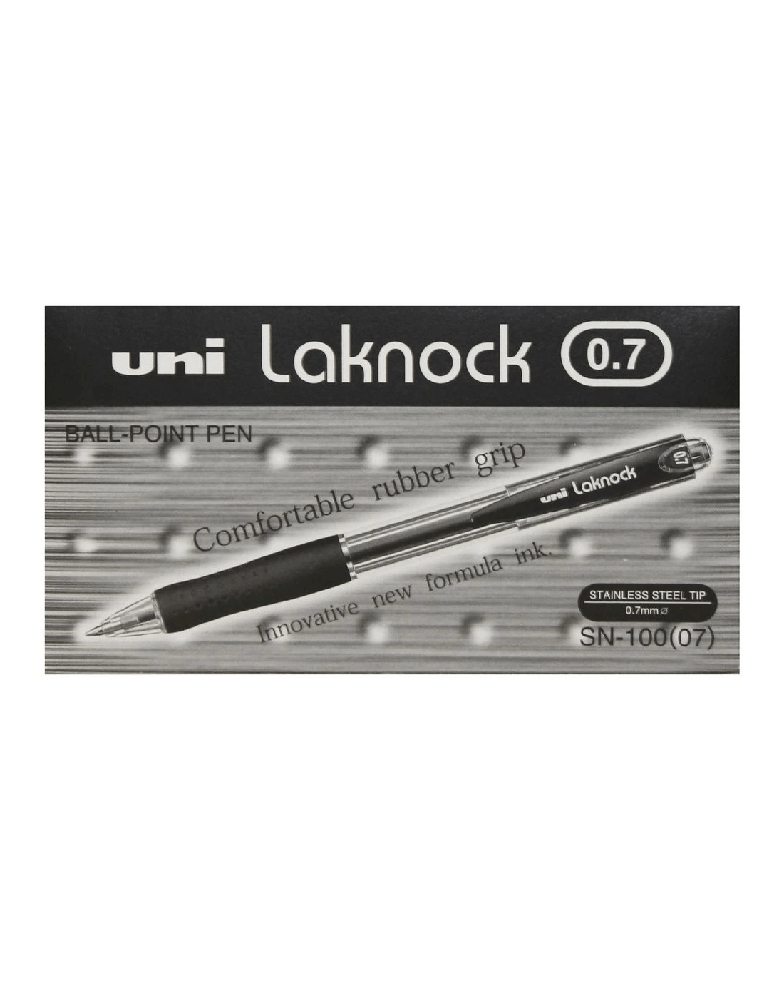 The Uni Laknock Retractable Ballpoint Pens have been designed so they produce smooth flowing lines without scratching or smearing. The stainless steel tip combined with the rubberised grip will help you write all day long without becoming tired.