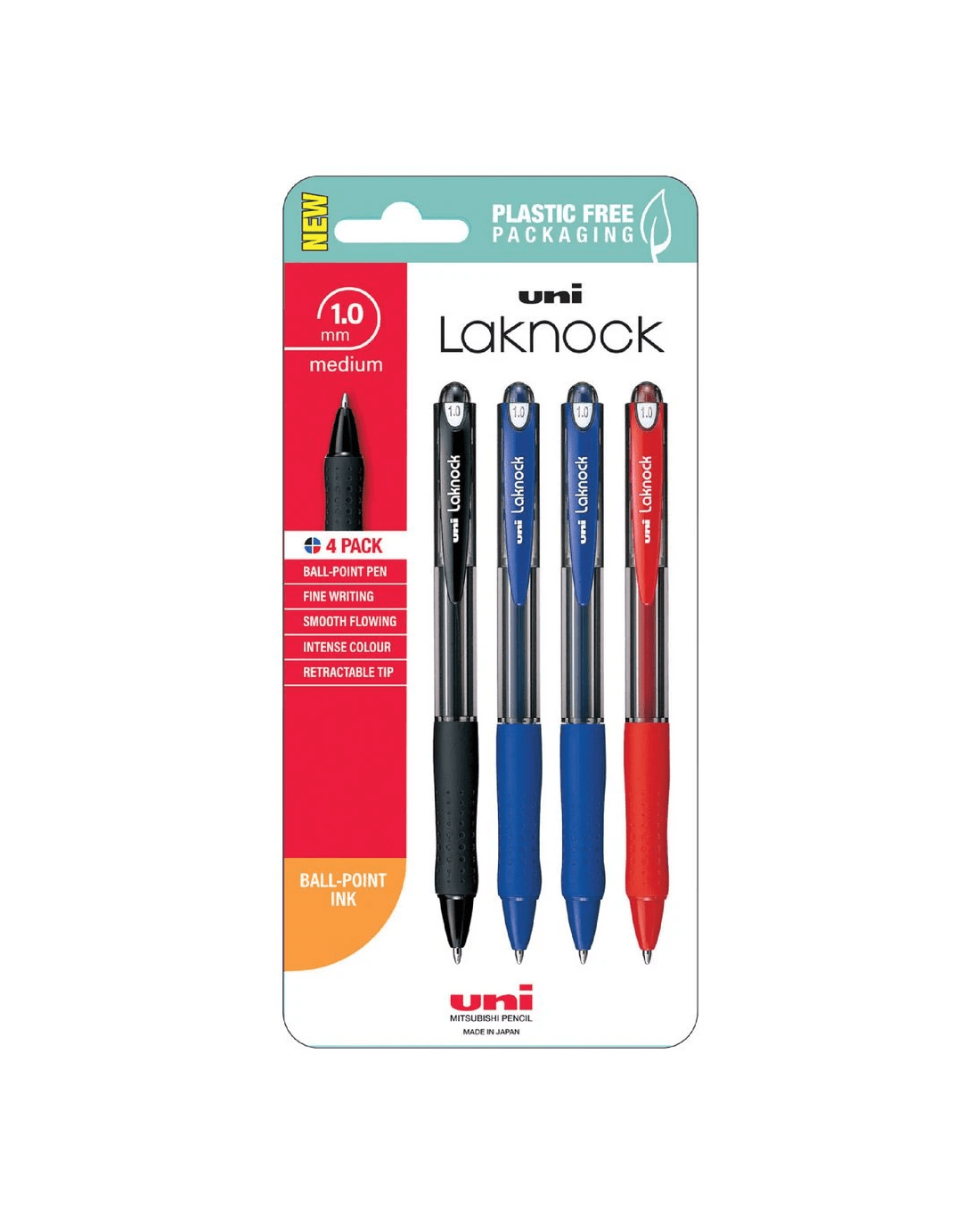 Sold by OfficeworksUni Laknock Retractable Ballpoint Pen 1.0 Assorted 4 Pack