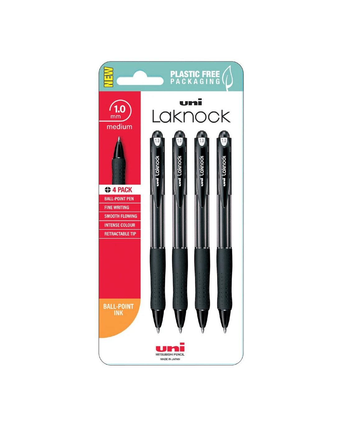 Sold by OfficeworksUni Laknock Retractable Ballpoint Pens 1.0 Black 4 Pack