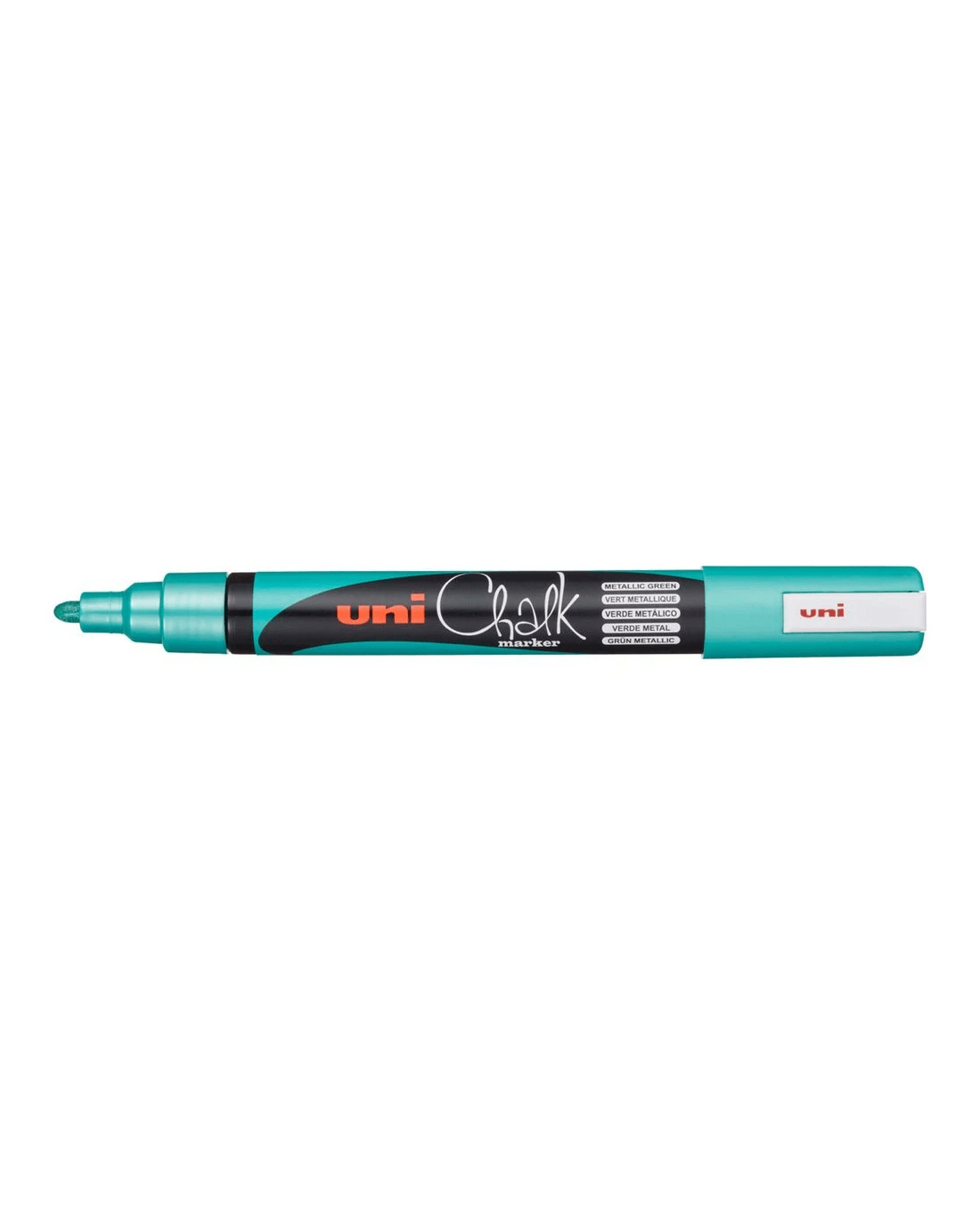 Sold by OfficeworksUni Liquid Chalk Marker Bullet Tip Metallic Green