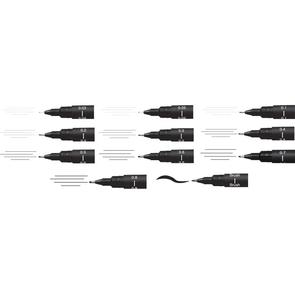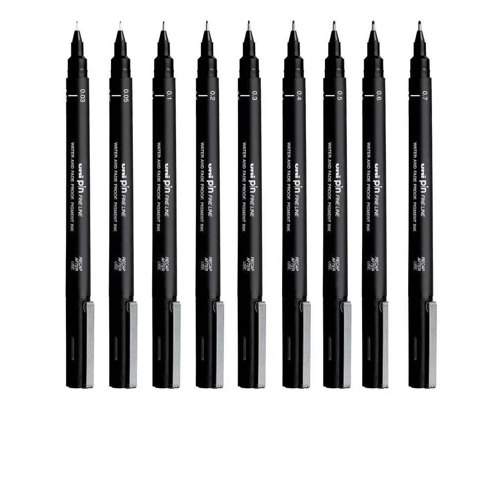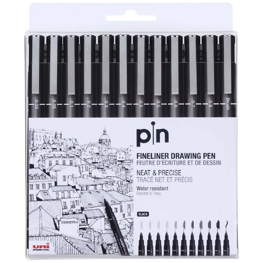 Uni Pin Fineliners Assorted Nib Sizes Black 12 Pack