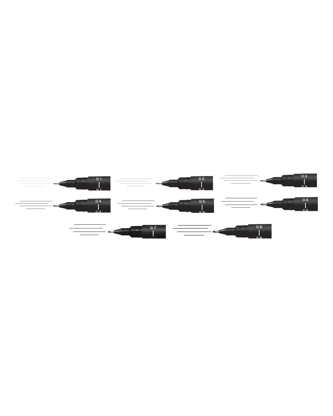 - This pack contains an assortment of nib sizes including 0.1, 0.2, 0.3, 0.4, 0.5, 0.6, 0.7 and 0.8 mm.