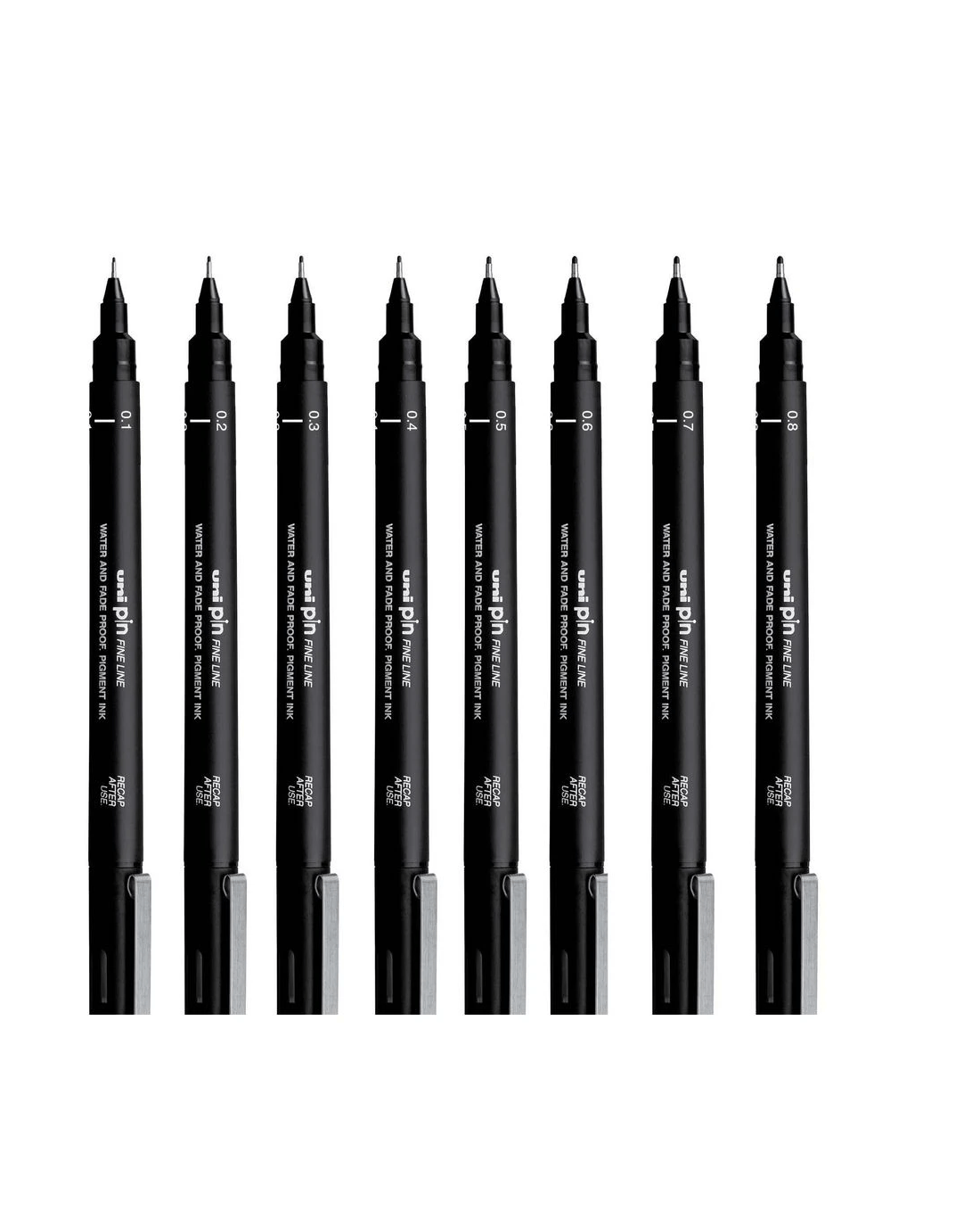Sold by OfficeworksUni Pin Fineliners Assorted Nibs Black 8 Pack