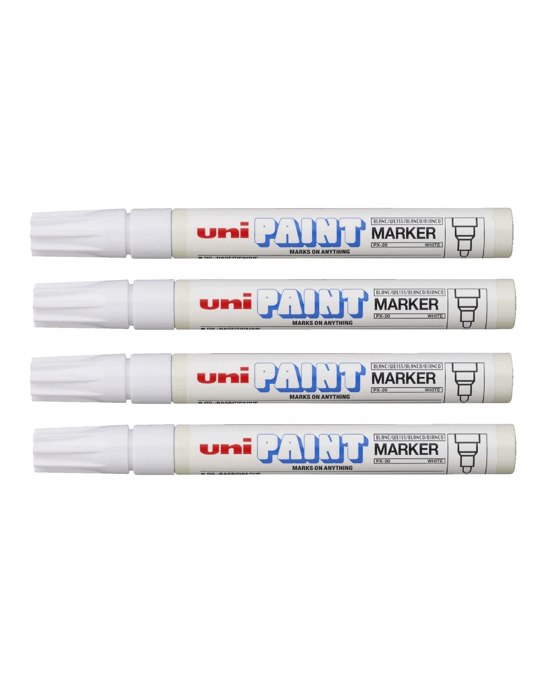 These Uni PX-20 Paint Markers can be used on almost any surface to leave behind opaque markings. It is both waterproof and fade-resistant for durable, long lasting results whether you're using it inside or out.
