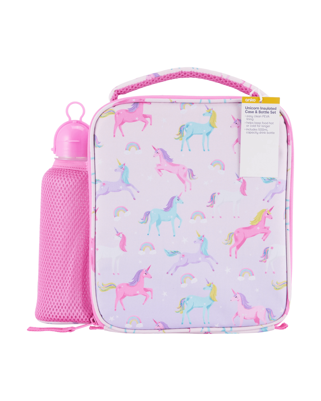 Carry snacks and water in this Unicorn Insulated Case and Bottle Set, which will keep the food cool or hot for a longer period of time.