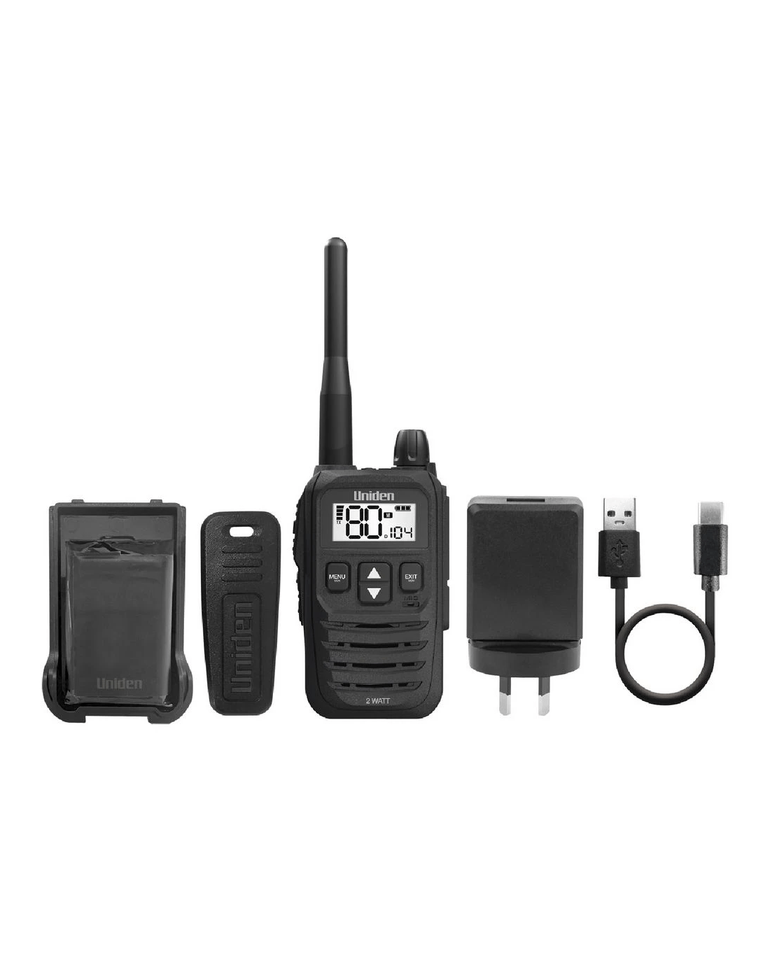 This Uniden UHF Handheld Radio offers 2 watts of power and 80 channels with a range of up to 13ks in a rugged design. The Smart Key feature allows you to toggle between the instant channel, call tone or keypad lock feature to tailor to your needs. The trade quality and professional design makes it ideal for commercial use, hiking, construction sites, restaurants and more.
