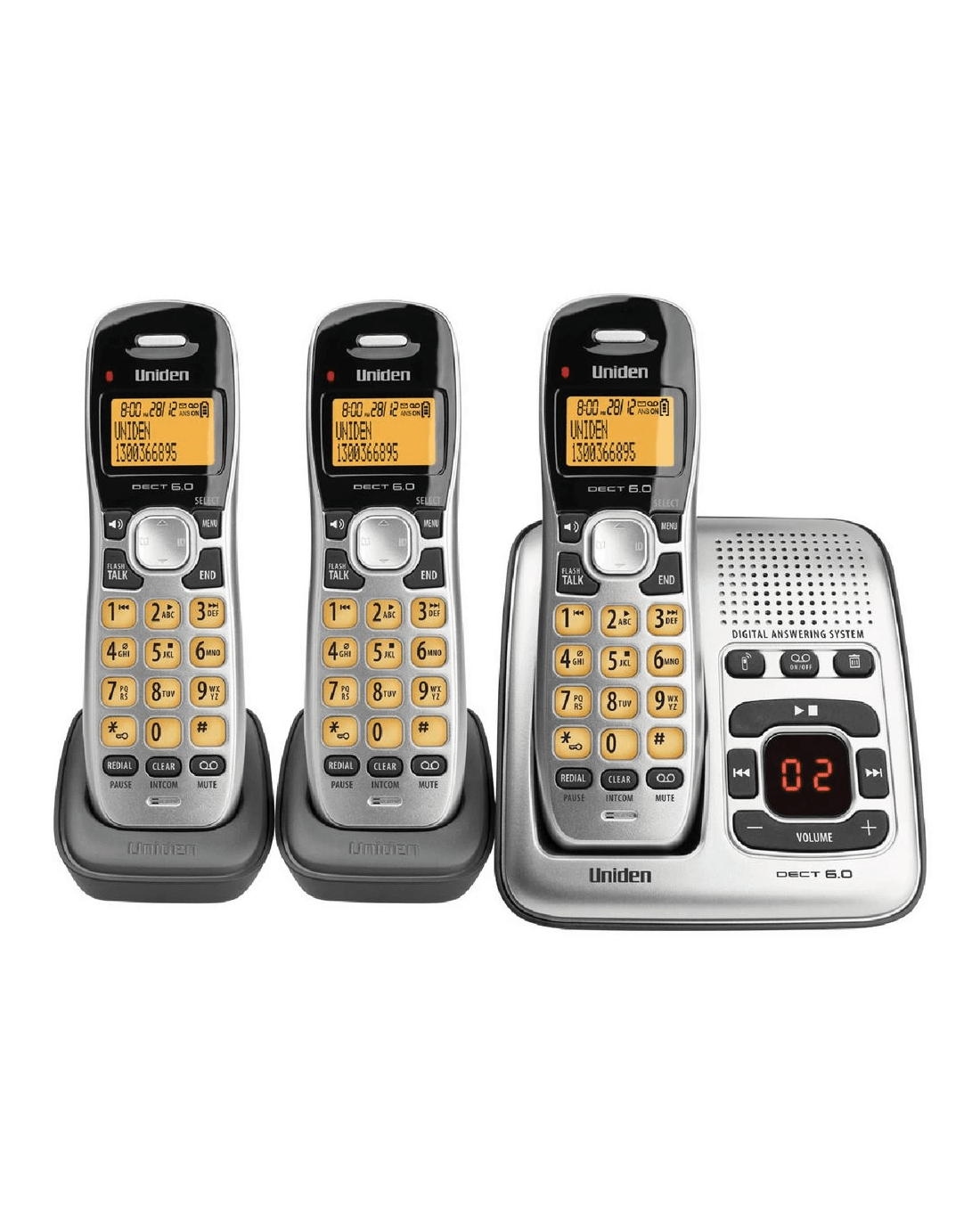 This Uniden 1735+2 Cordless Phone comes with 3 handsets and is multi-handset capable allowing connection of up to 6 handsets from the same phone line making it ideal for a household of any size. It utilises Wireless Friendly DECT technology and has an integrated digital answering machine with message counter so you don't miss those important phone calls. You can adjust the sound and choose from a variety of ring tones so you can personalise it to suit your preferences.