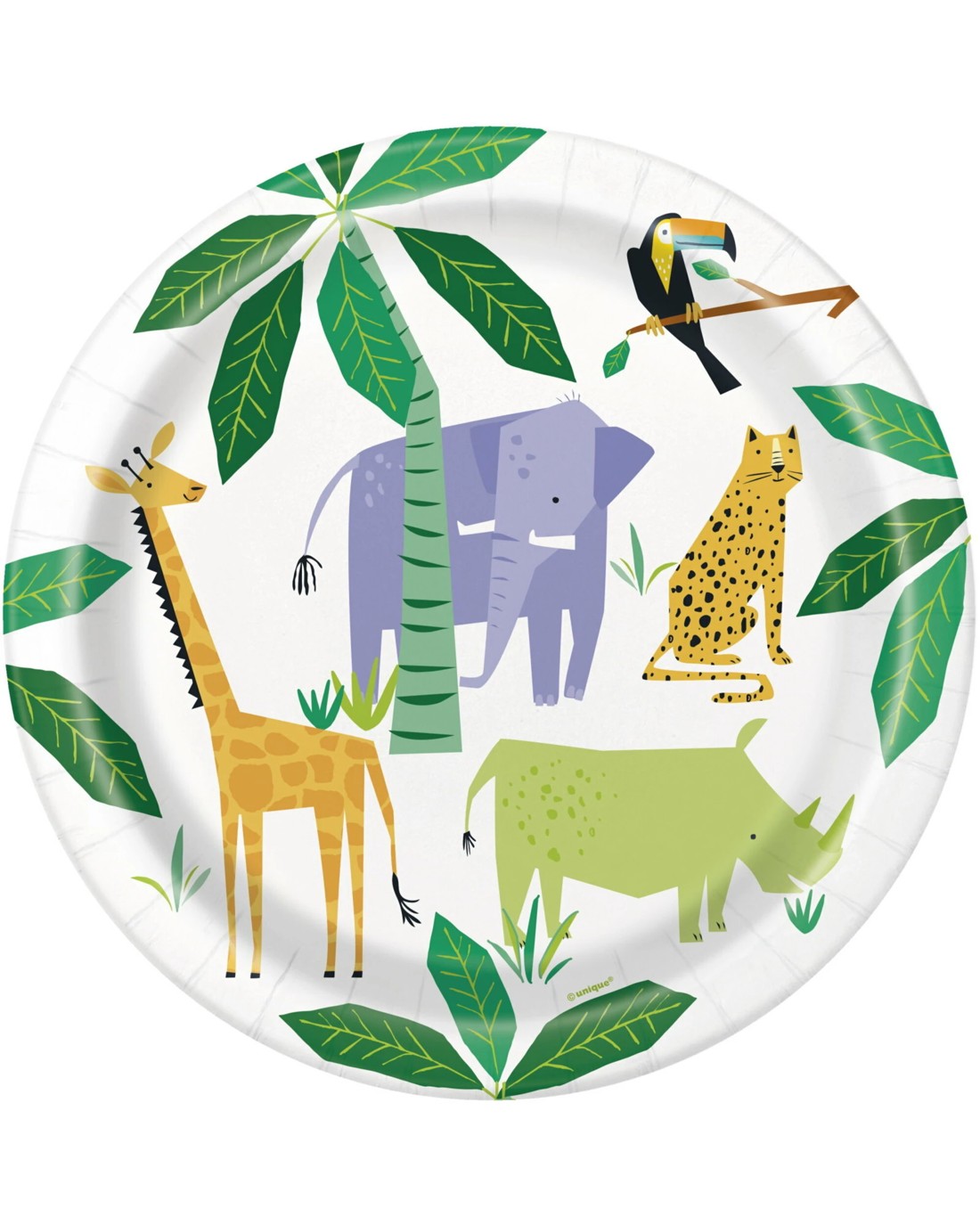 Featuring abstract illustrations of jungle animals such as an elephant, giraffe and toucan these large paper plates make a totally wild way to serve lunch or dinner at your Jungle, Safari or Zoo themed party. Combine with matching Animal Safari themed tableware and decorations for the ultimate wild safari adventure!