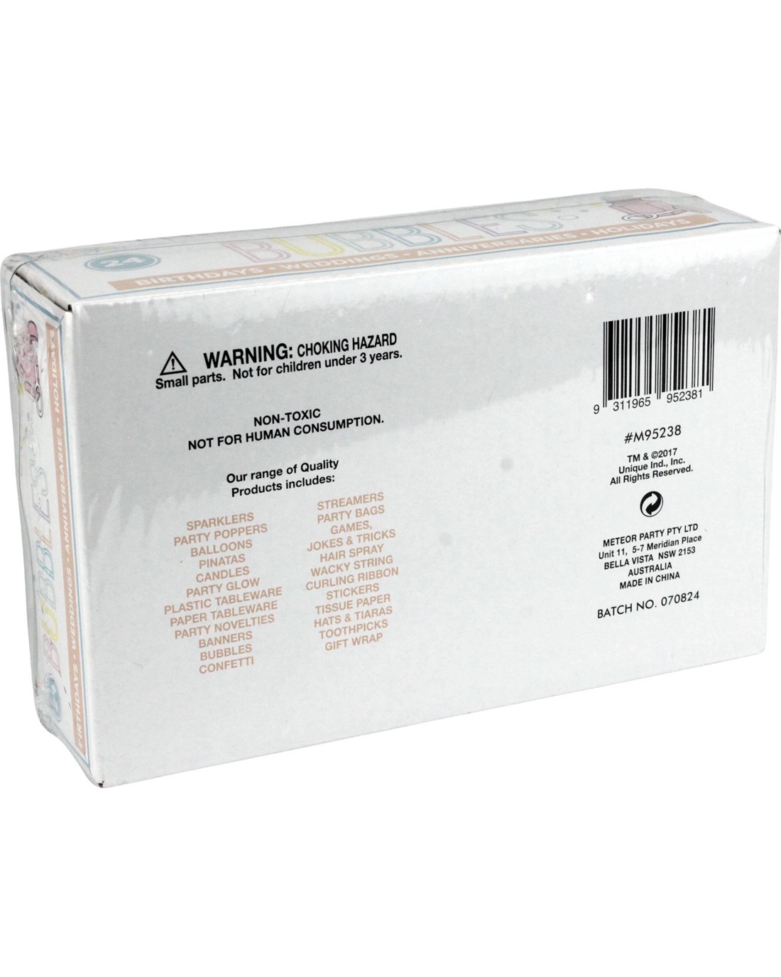 Brighten up your next celebration with these Mini Pastel Bubble Bottles! Perfect for party favours, giveaways, or fun-filled activities, these adorable bubble bottles are designed to add a touch of whimsy to any event. With their compact size and vibrant pastel colours, they are easy to carry and provide endless bubble-blowing enjoyment for kids and adults alike. Whether it's a birthday party, wedding, baby shower, or a casual picnic, these bubble bottles bring joy and laughter to every occasion. Made from durable materials and filled with non-toxic bubble solution, they ensure safe and fun play for everyone.