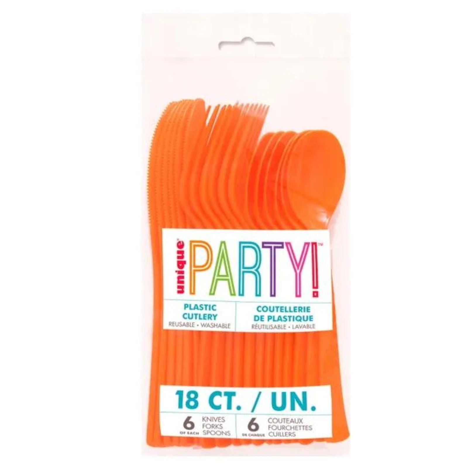 Unique Orange Reusable Plastic Cutlery (Pack of 18)