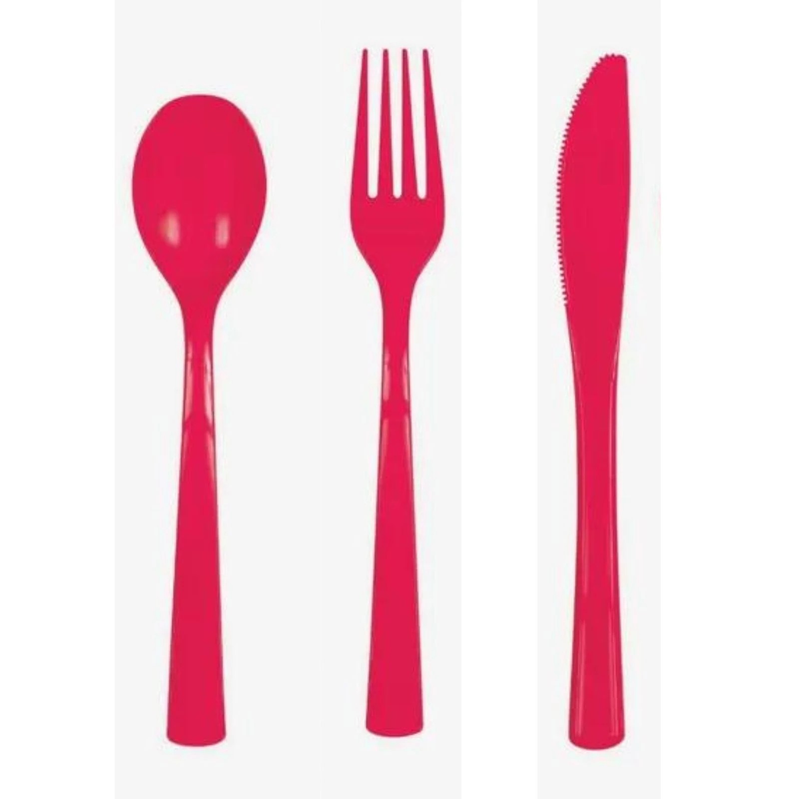 Unique Red Reusable Plastic Cutlery (Pack of 18)