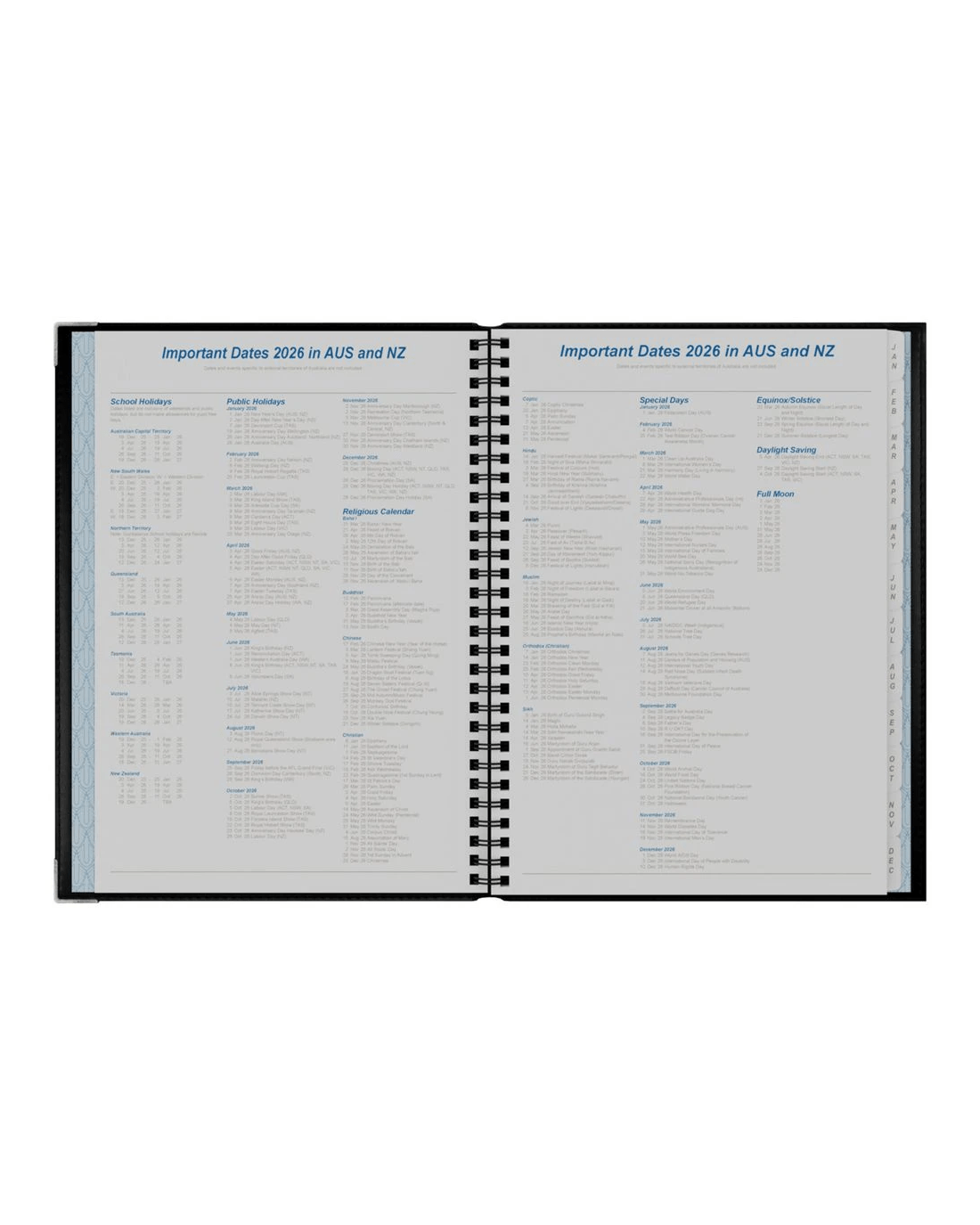 - It lists all Australian and New Zealand national holidays and school terms.