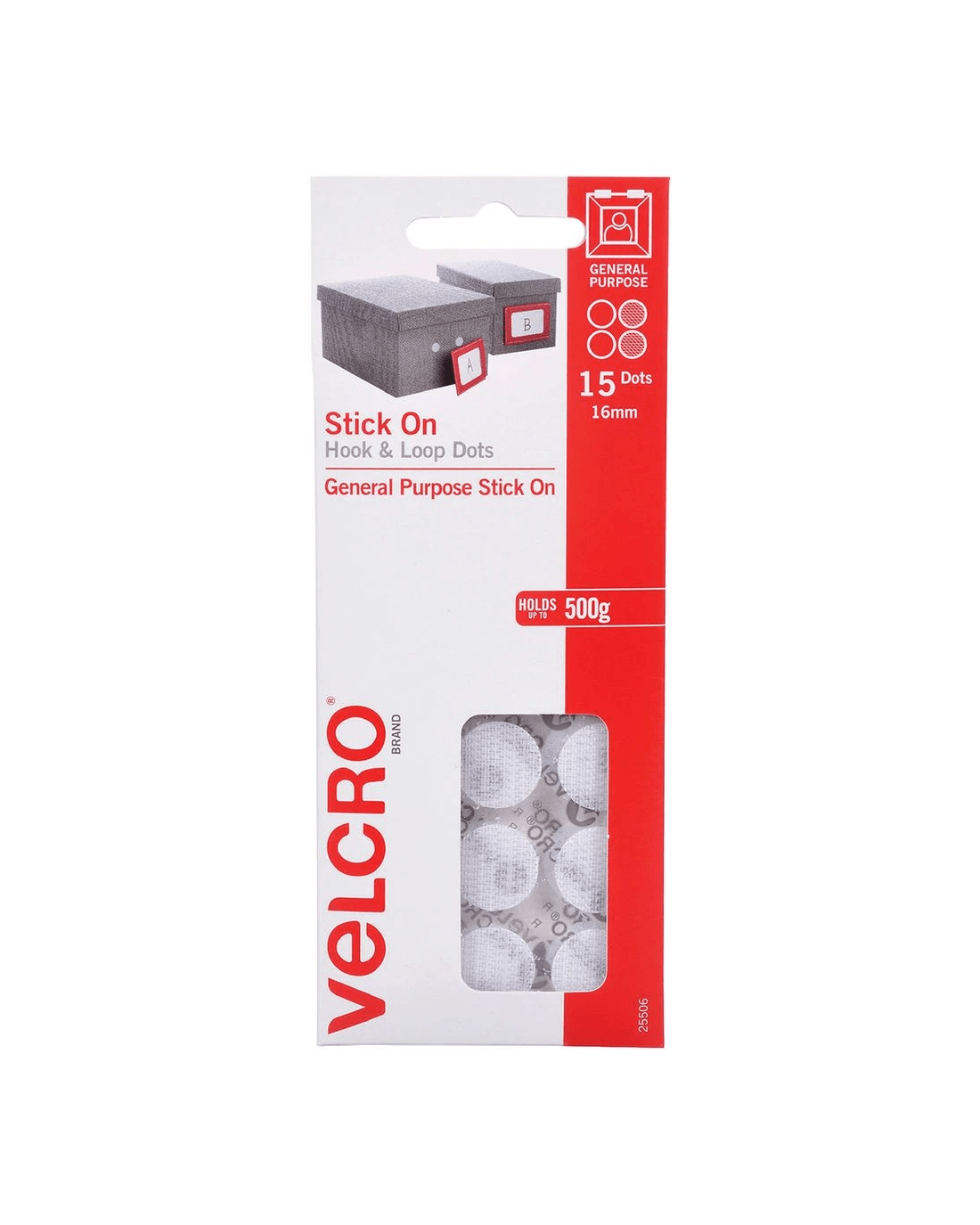 VELCRO Brand Hook and Loop Mini Dots are a convenient way of quickly mounting posters, signs, cables and displays around the home or office. This pack comes with 15 self-adhesive dots that are 16 mm in diameter and will adhere to most surfaces.