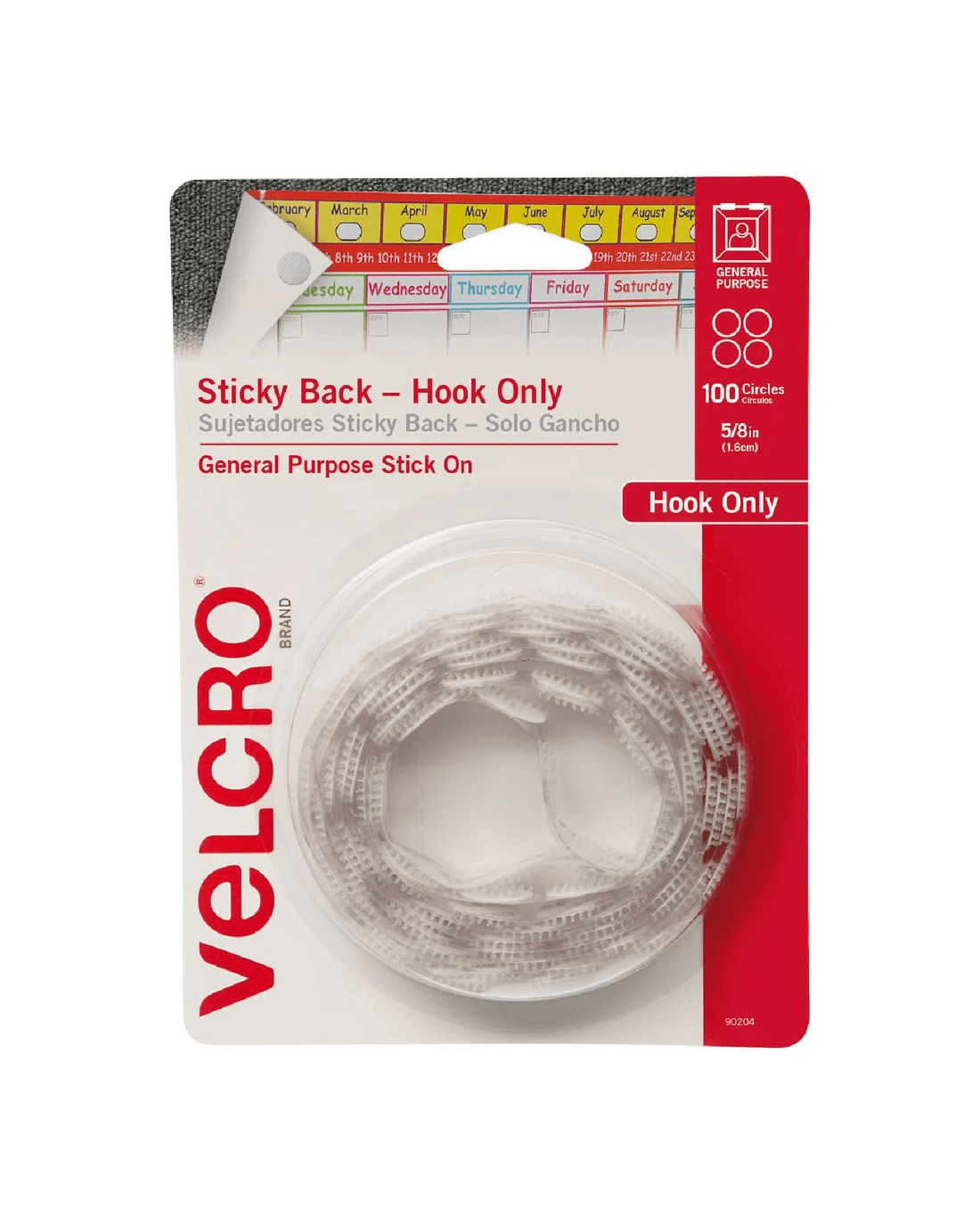 VELCRO Hook Only Dots are a convenient way of quickly mounting posters, signs, cables and displays around the home or office. They can be used in conjunction with VELCO Loop Dots. This pack comes with 100 self-adhesive hook dots that are 16 mm in diameter and will adhere to most surfaces.