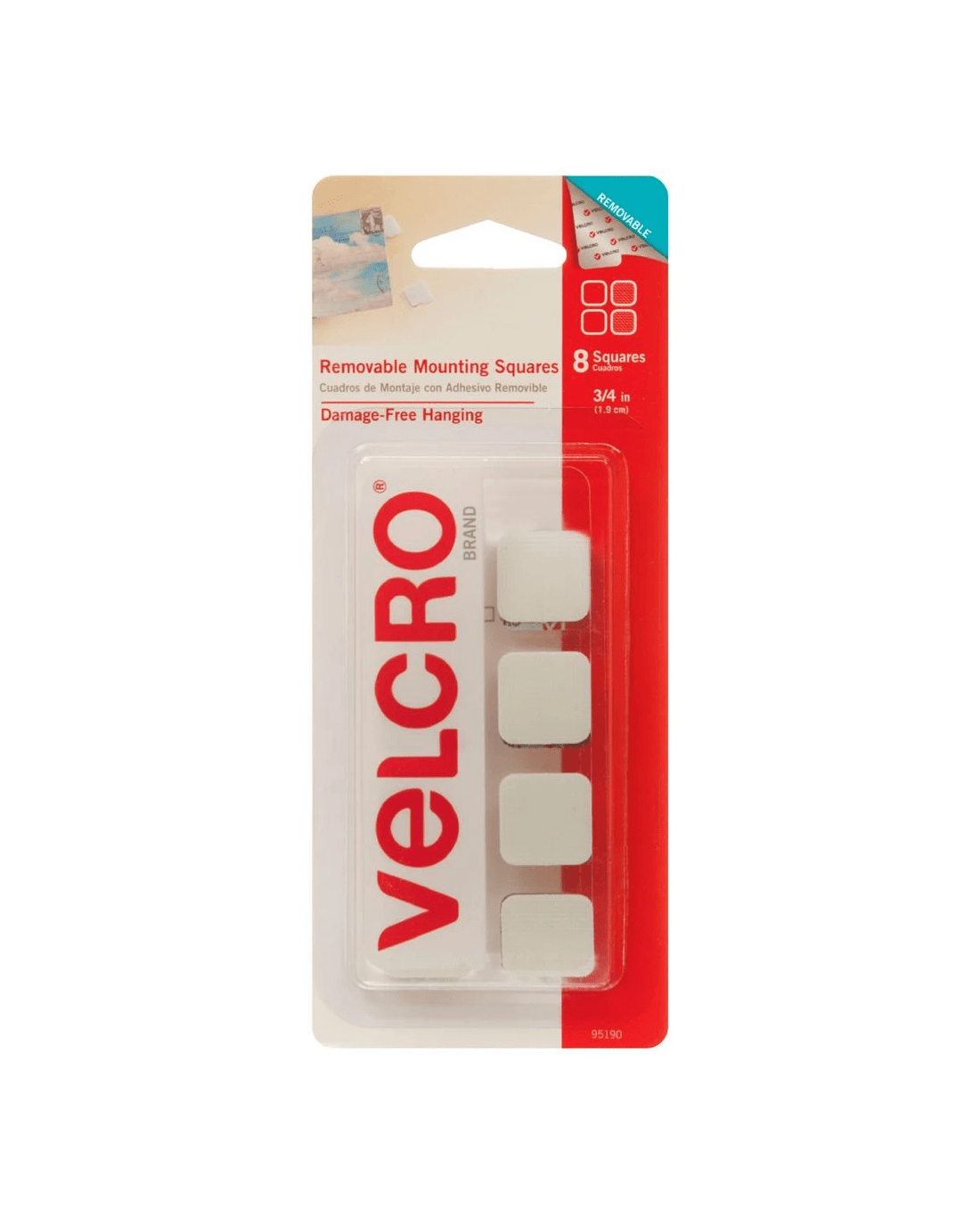 VELCRO Removable Squares are a convenient way of quickly mounting posters, signs, cables and displays around the home or office. This pack comes with 8 self-adhesive squares that are 19 mm in width and will adhere to most surfaces. Easily remove these without residue if you don't like where they're sitting.