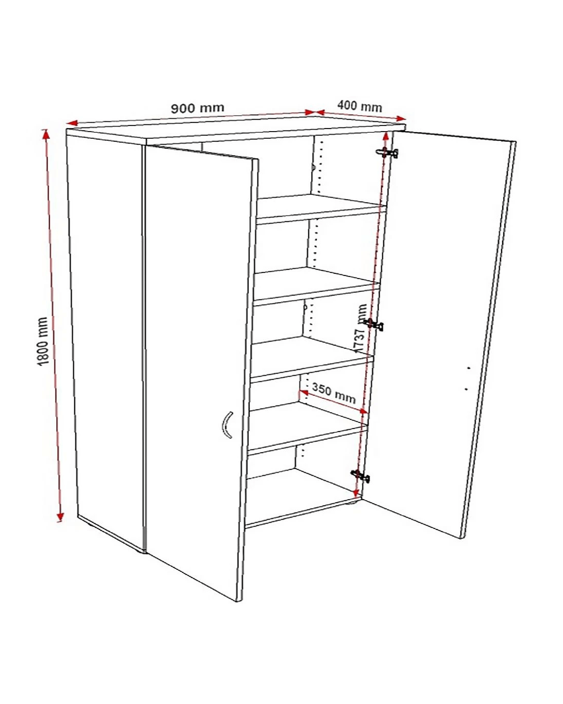- Its fully assembled dimensions are 900 W x 400 D x 1800 H mm.