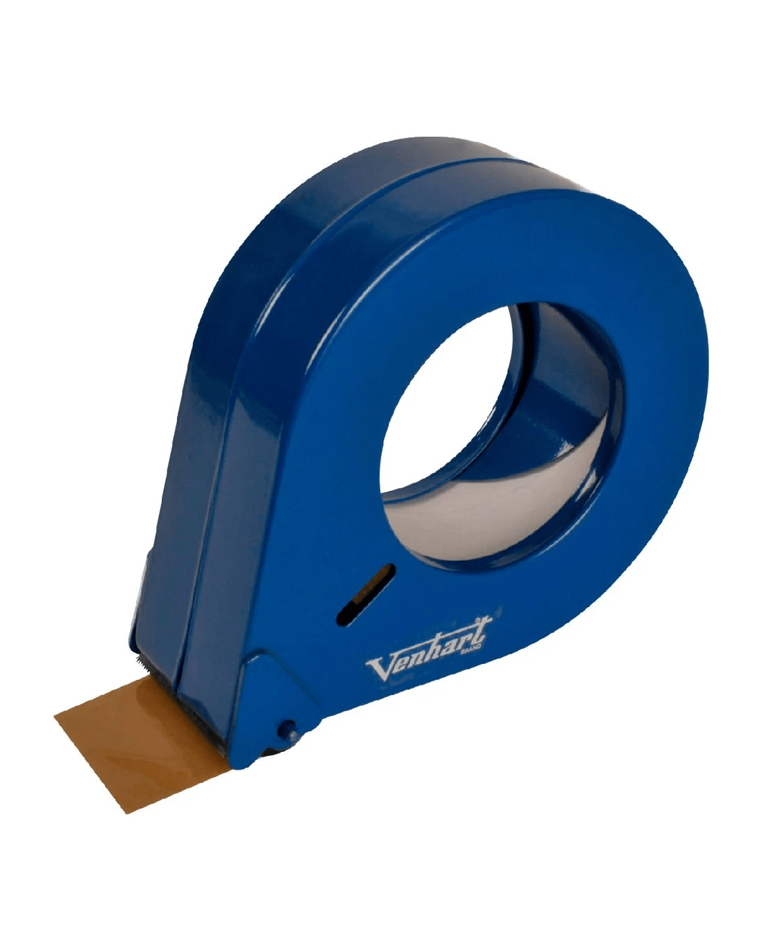 This Venhart Teardrop Tape Dispenser has a metal construction, making it a durable option for use in industrial applications. It features a hole where you can easily check how much tape is left and a medium blade.