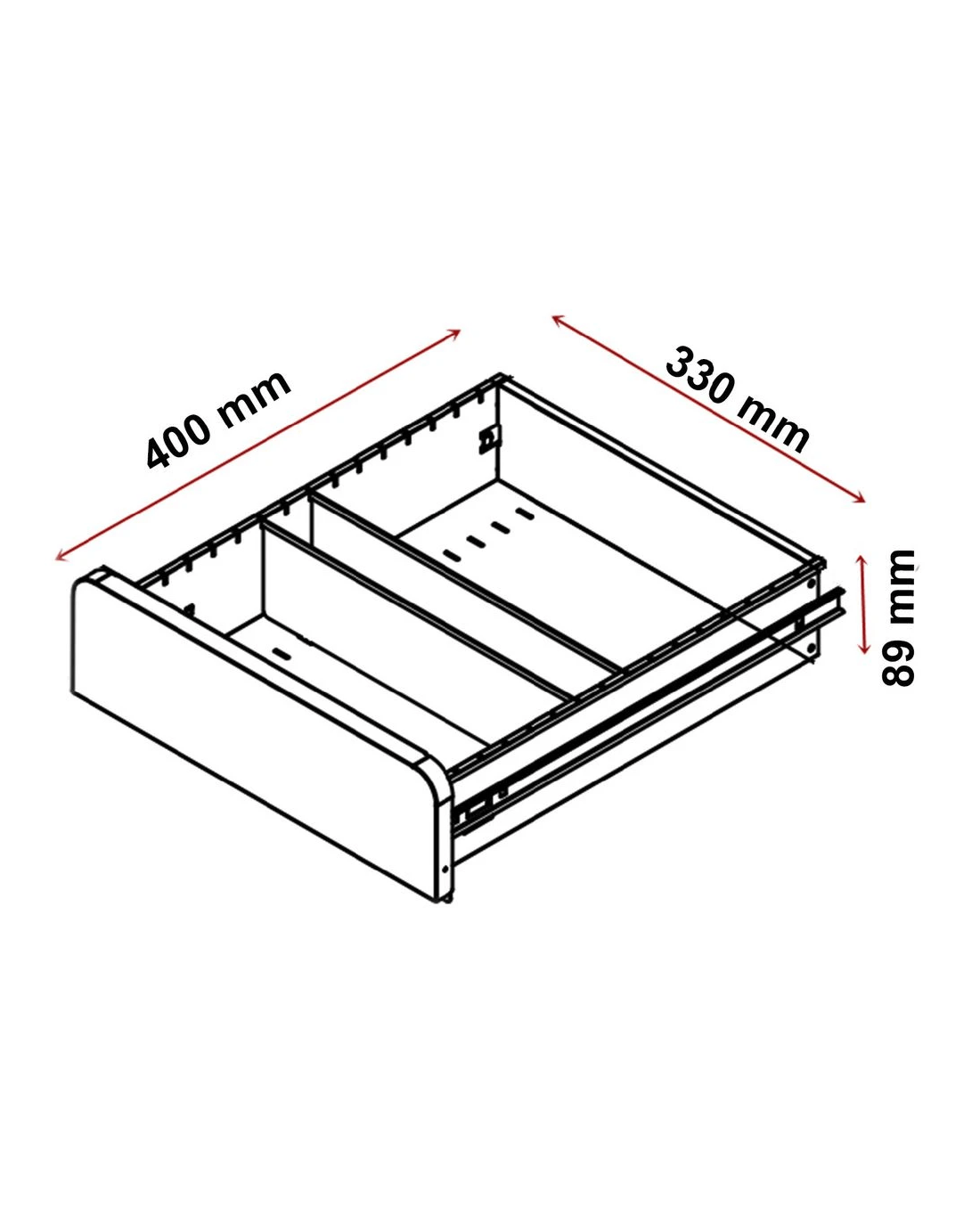 - The drawers have 30 mm wide ball bearing slide runners for added strength.