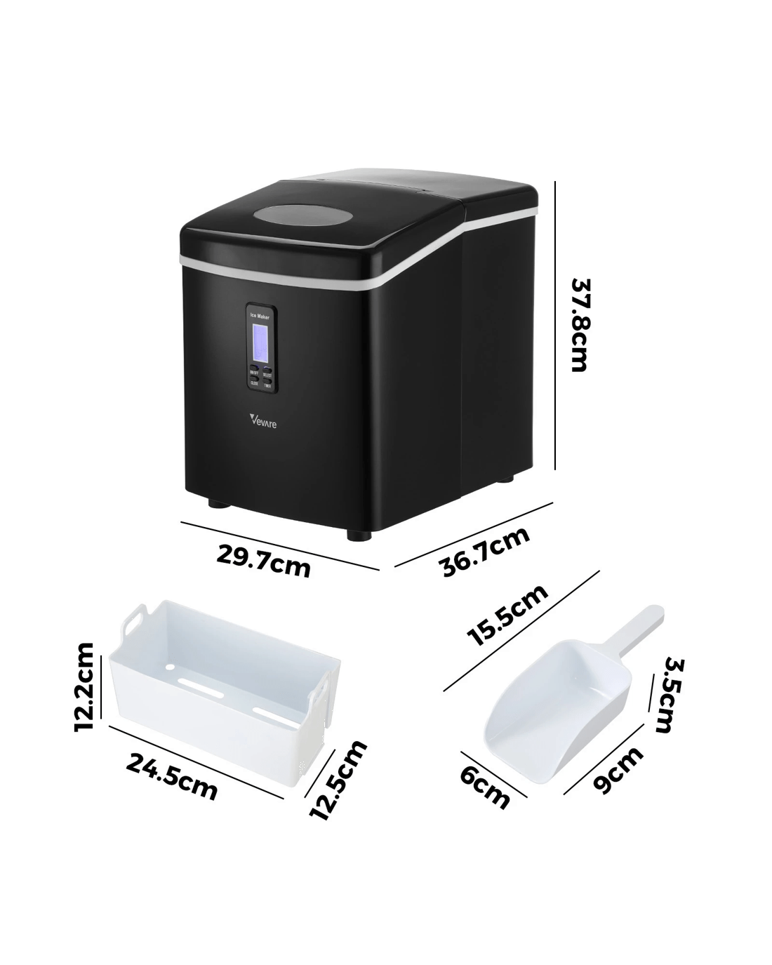 Sold by Kamprad's Oikos 1943Vevare 3l Portable Ice Maker Machine 15kg Ice Cube Tray Bar Countertop - Black