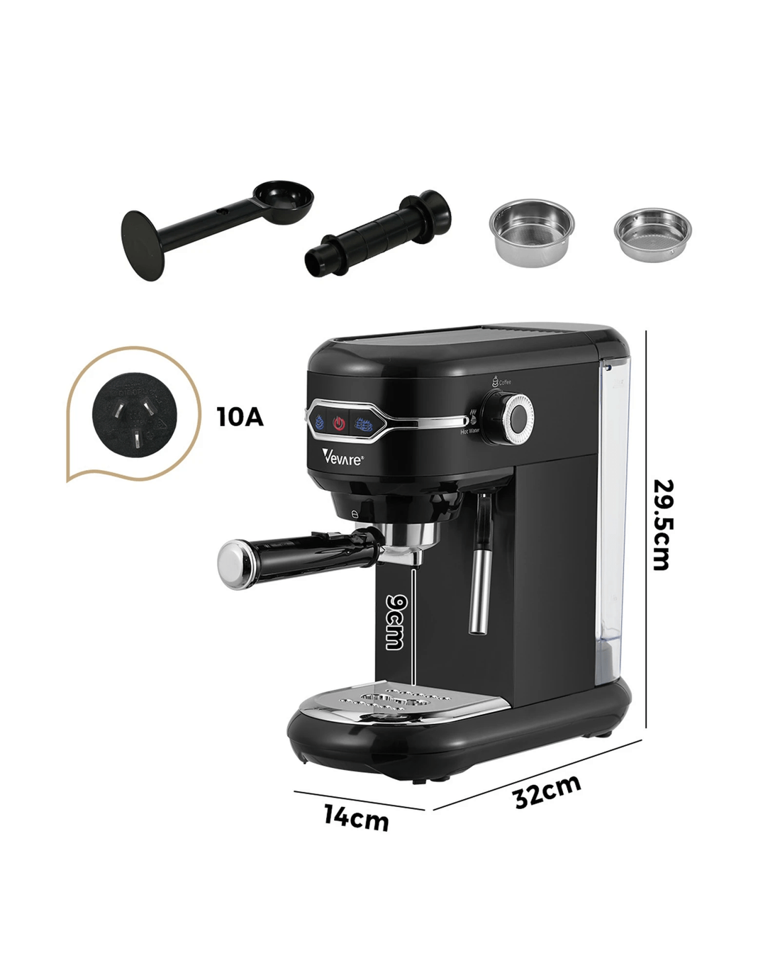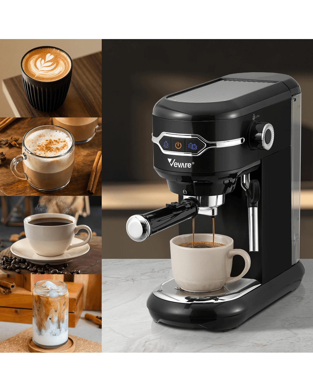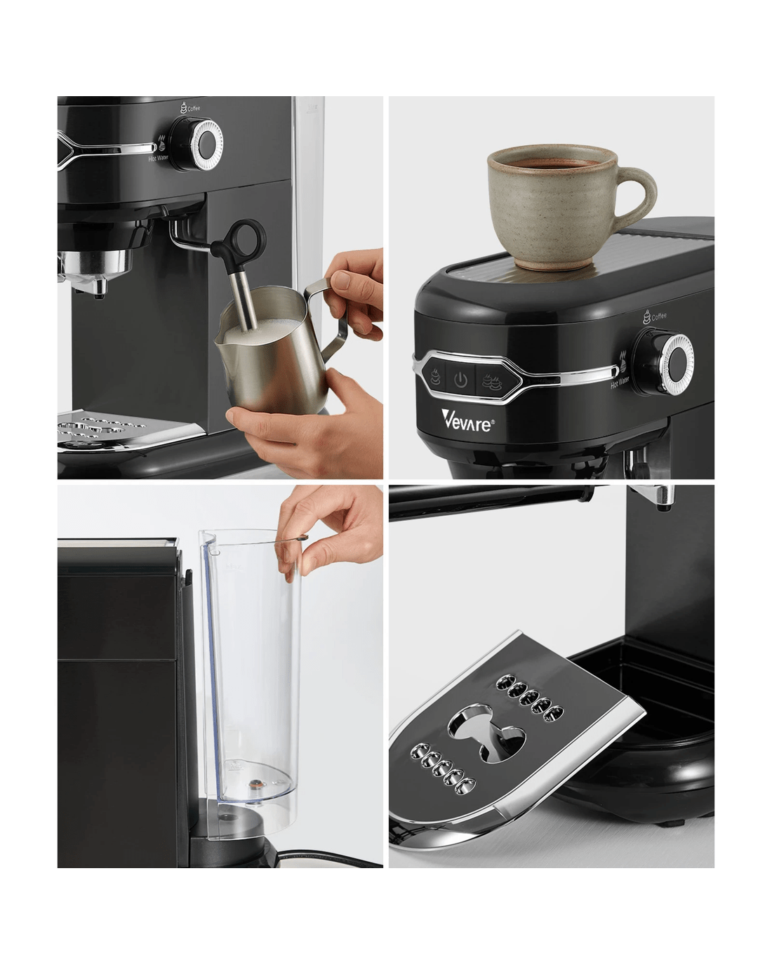 Sold by Kamprad's Oikos 1943Vevare Espresso Coffee Machine Latter Cappuccino Maker 19 Bar Milk Frother - Black