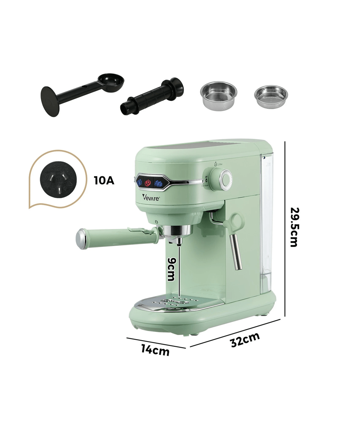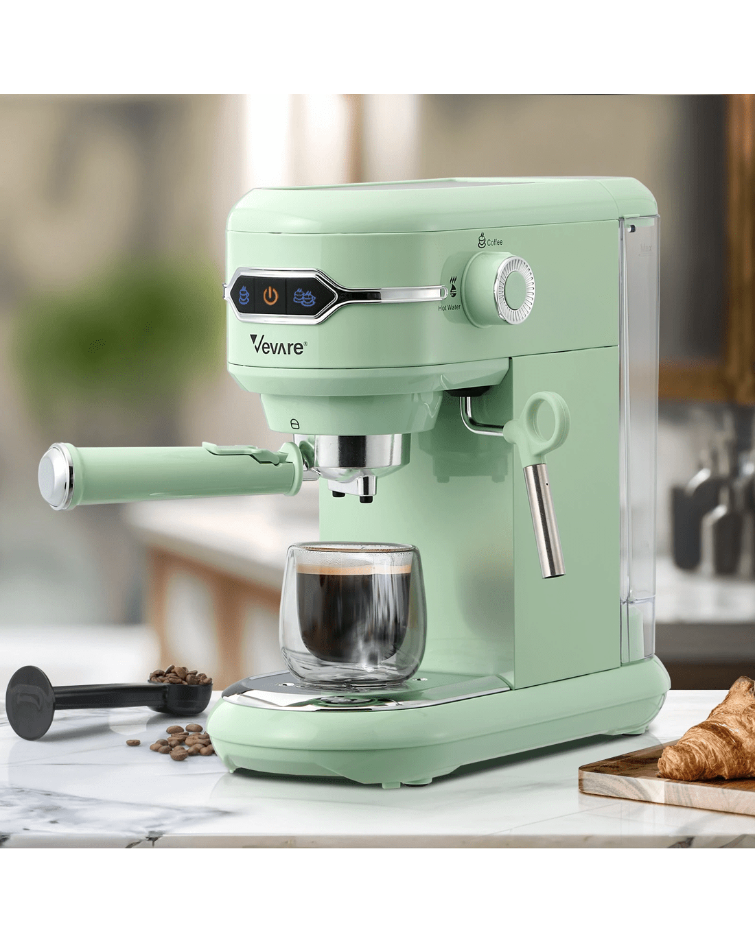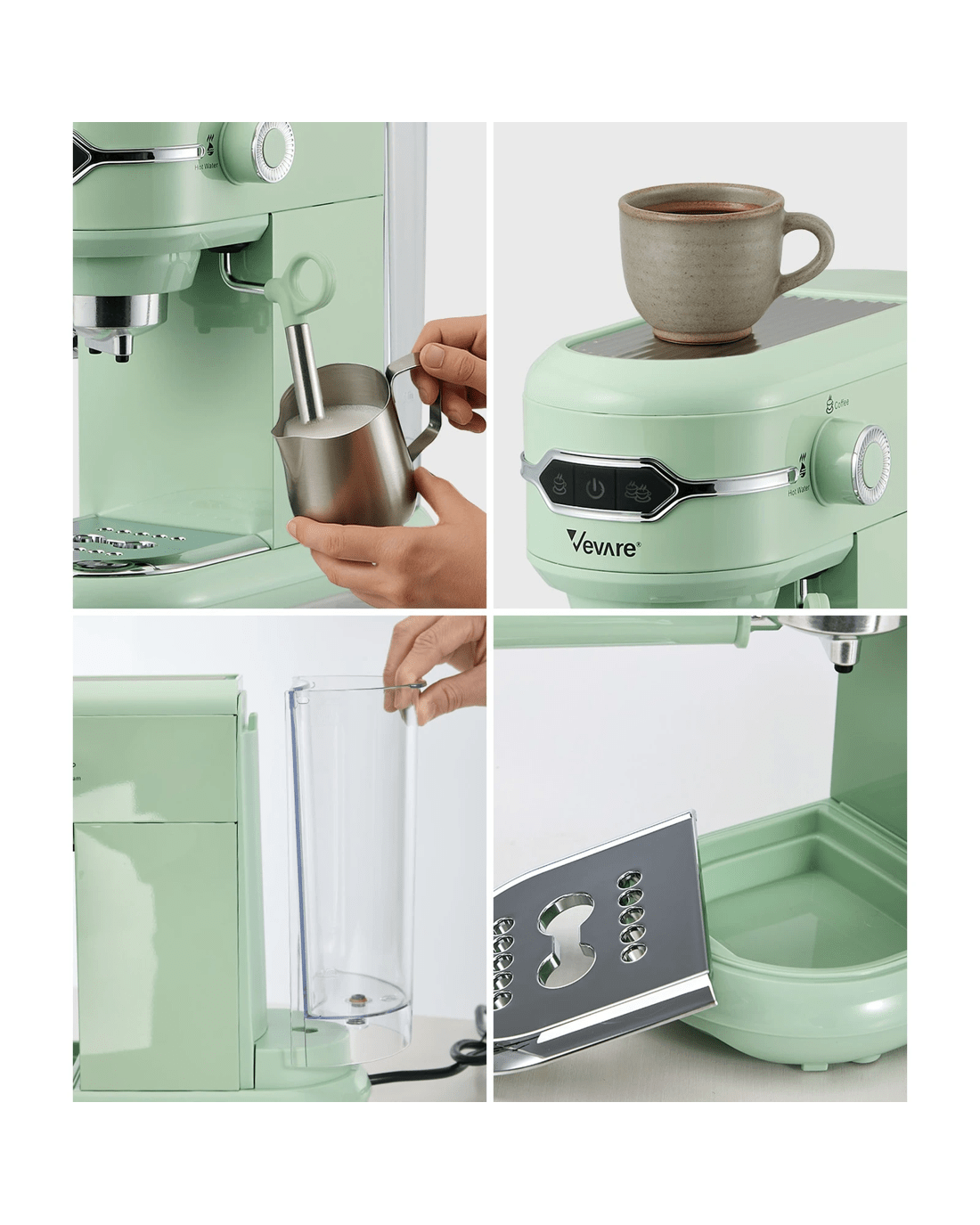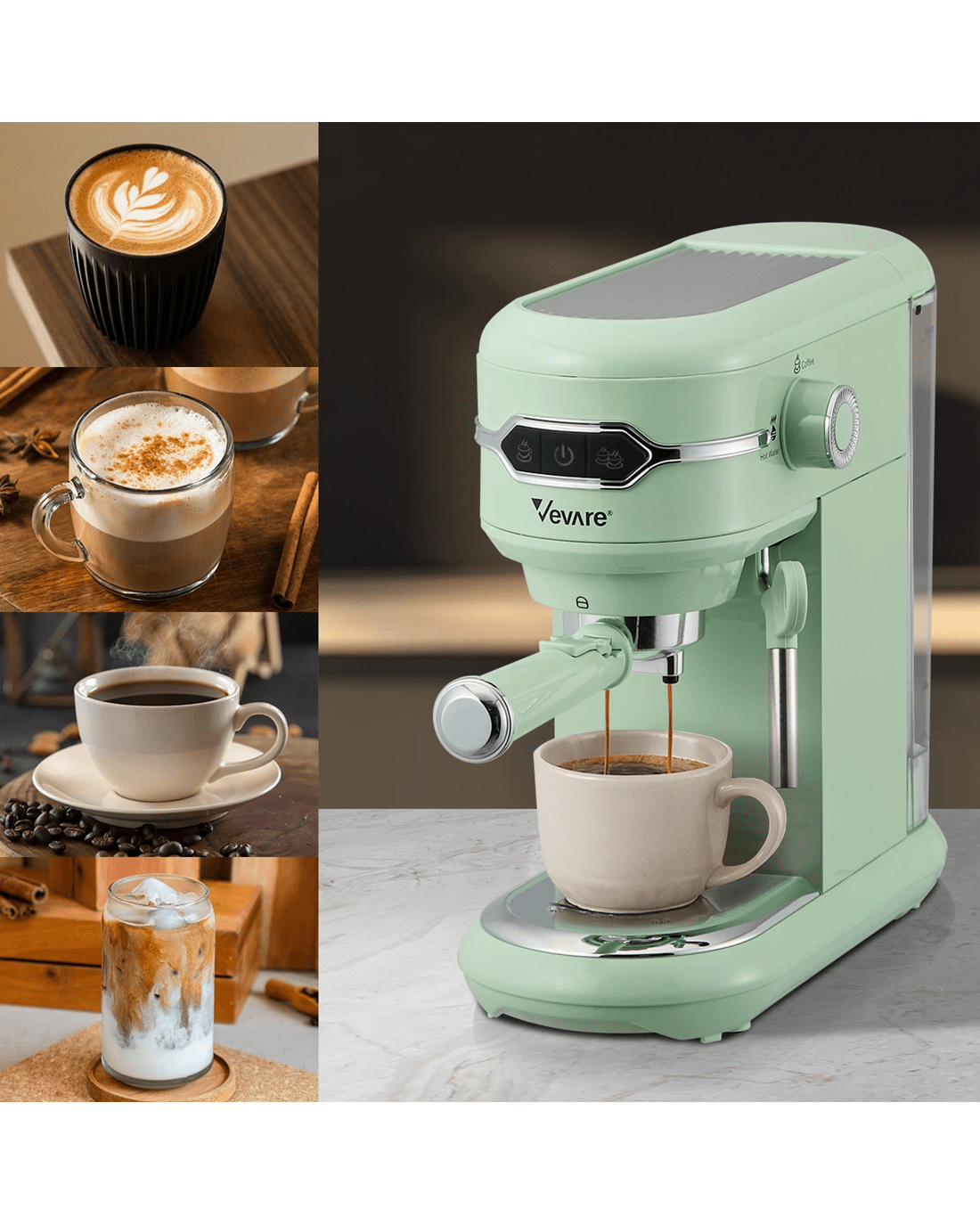 Vevare Espresso Coffee Machine Latter Cappuccino Maker 19 Bar Milk Frother - Green