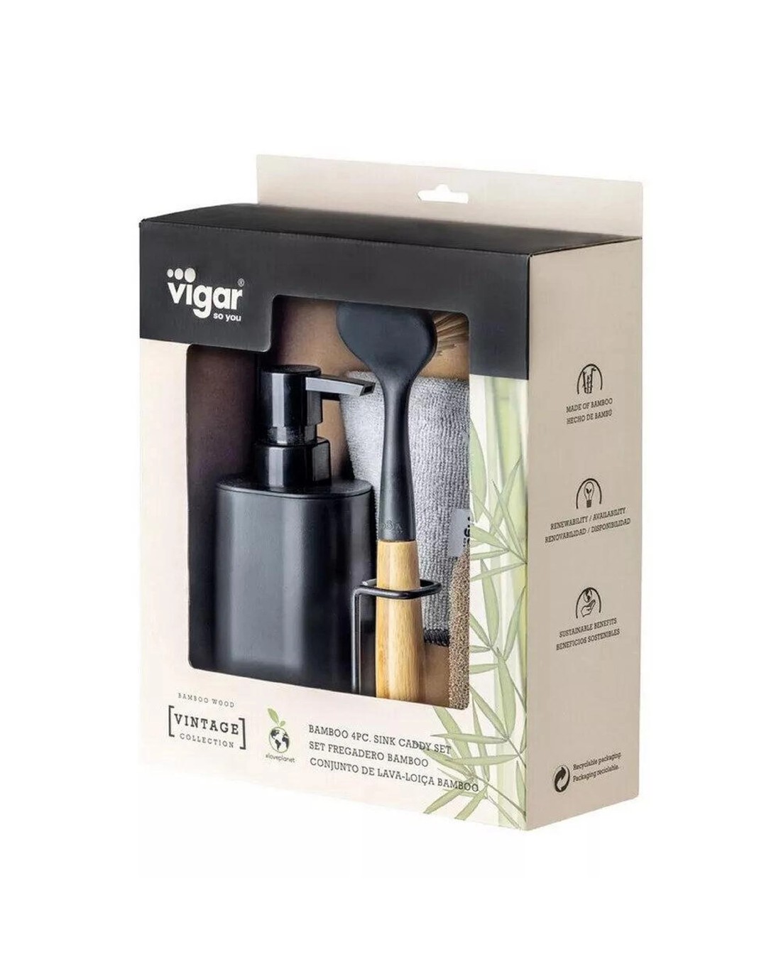 • The Vigar Vintage 4 Piece Sink Caddy Set brings classic style and practical convenience to your daily washing-up routine.