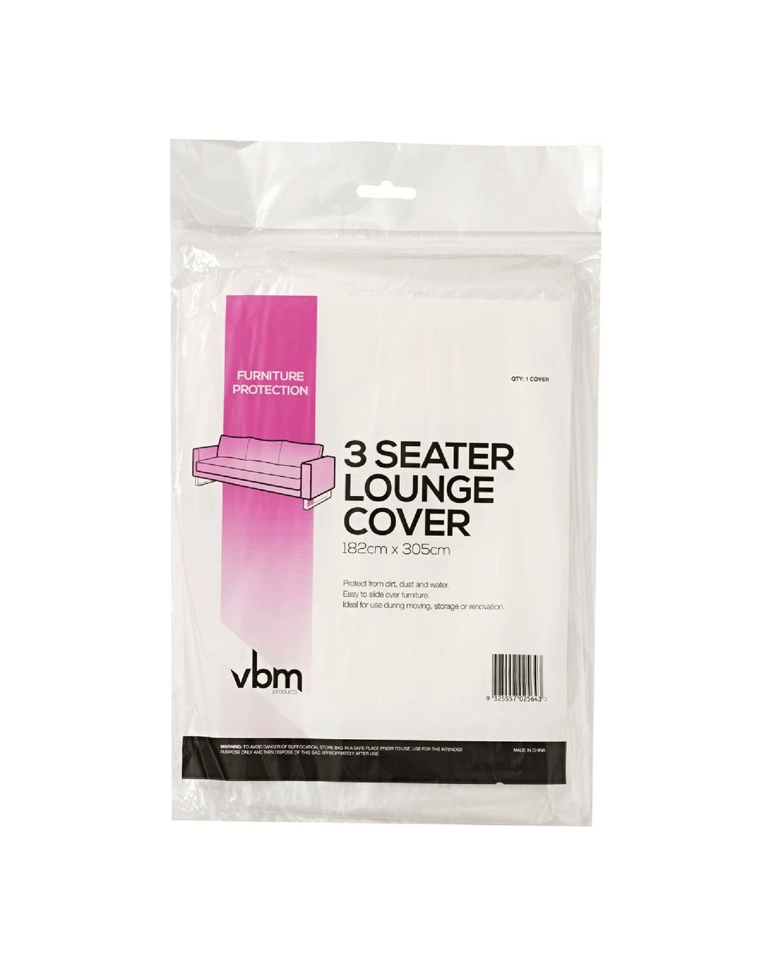 The Visy 3 Seater Plastic Protector is designed to protect your furniture from dirt, dust and moisture during storage or transport. It is large enough to fit a 3 seat couch and can also be used to protect other large, bulky furniture items.