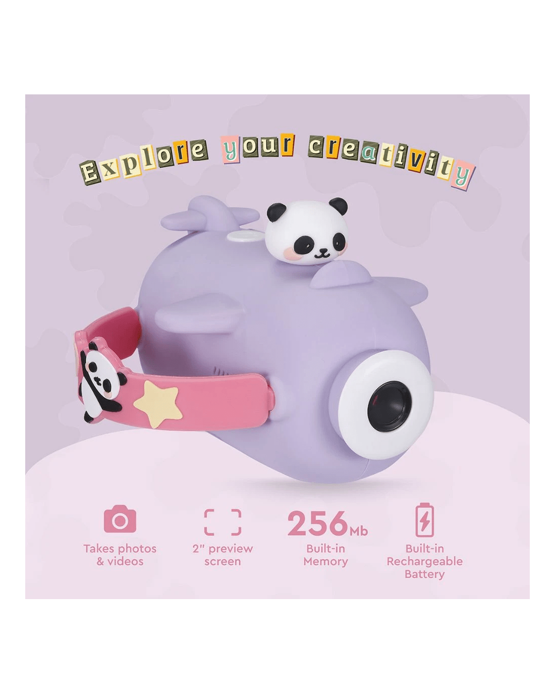 - The camcorder features a fun Panda-themed design that appeals to children.
