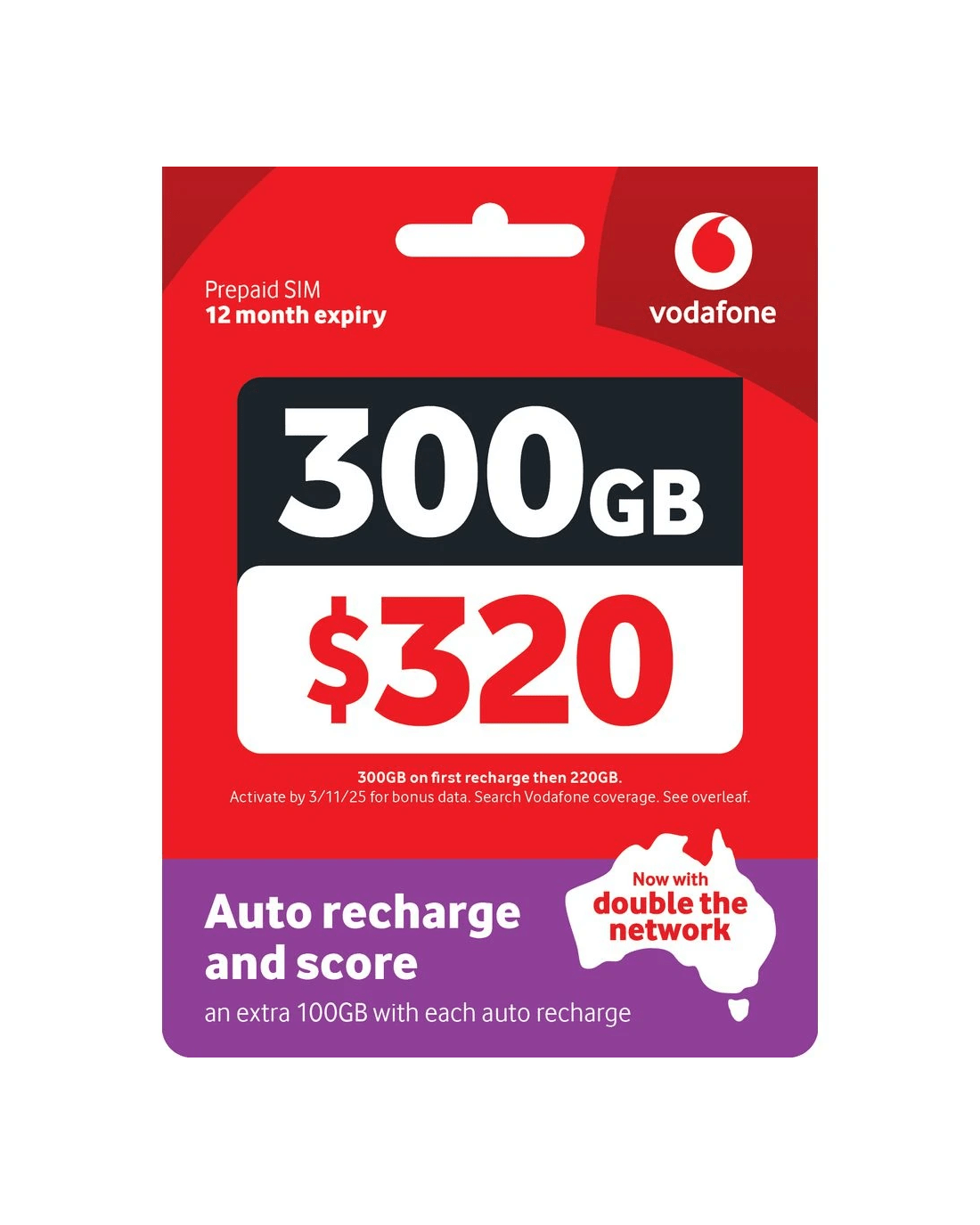 - The plan includes a recharge amount of $320, with 220 GB of data included.
