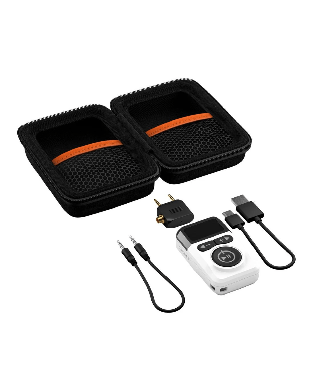 The Voyager MultiStream Adapter turns a device without Bluetooth into a hub where you can pair wireless headphones or sound systems, so you can enjoy cord-free music on flights, in the car, and other places. It has an LCD display that shows volume, battery status, and pairing status.