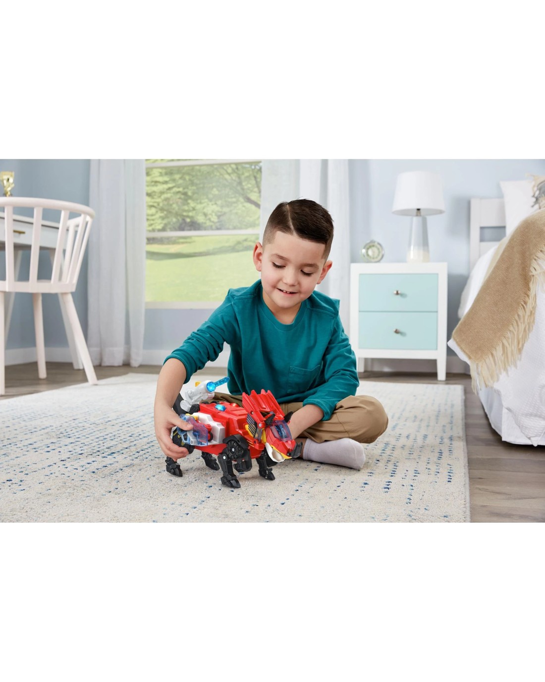 • Rolling out! It's mission time! Easily switch Hero the Triceratops into a blazing fast fire engine and back again