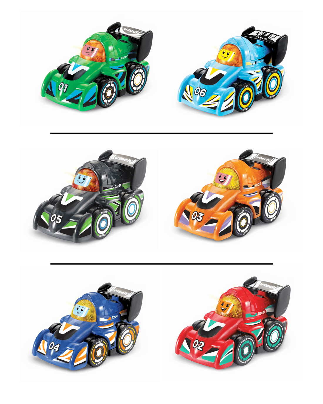 Set your little one’s imagination racing with the VTech Toot-Toot Drivers V Racers. Just the right size for small hands, these lively cars zoom along with a cheerful push. Children will love pressing the light-up face button to hear fun tunes, realistic engine sounds and catchy songs. With a choice of three sing-along songs and six lively melodies, each moment is filled with musical joy. These cars support hands-on play, help develop early motor skills and encourage children to role-play their own exciting adventures. Choose from three colourful packs and start the fun – it’s a fantastic way to inspire creativity and learning.Features
