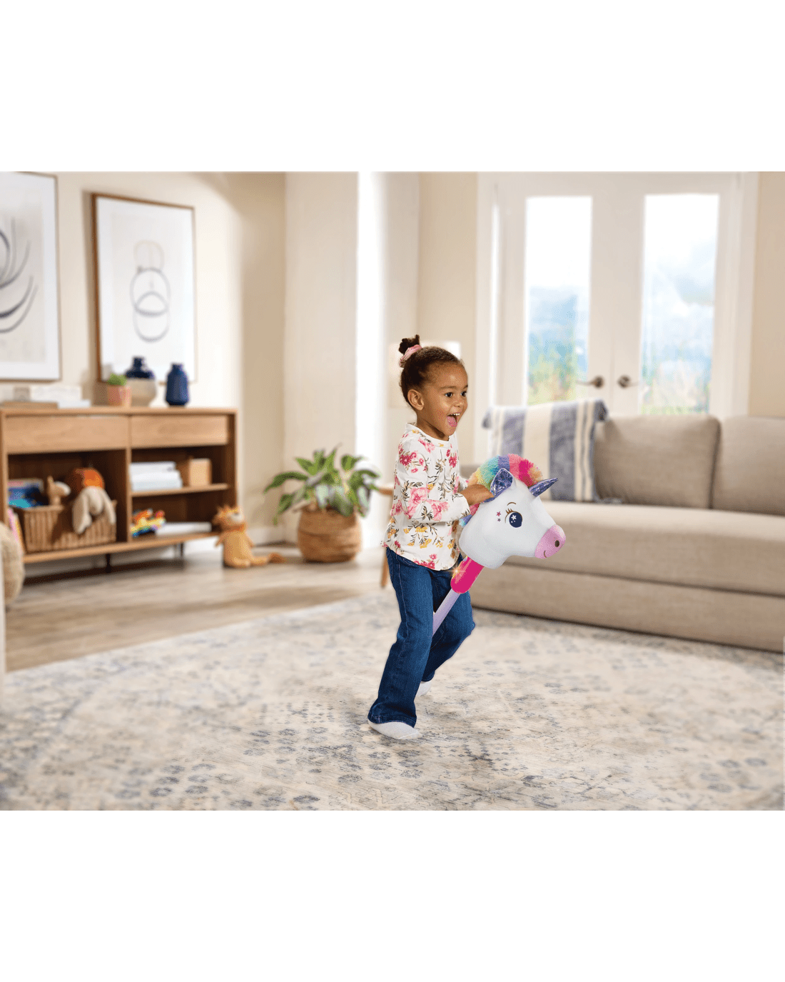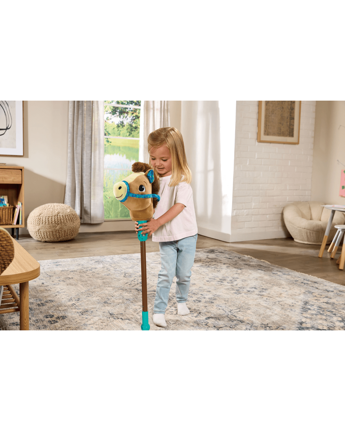 - Hop in the saddle of this adorable hobby horse or unicorn, then ride and dance to the music or discover facts about the friendly horse or unicorn in two modes