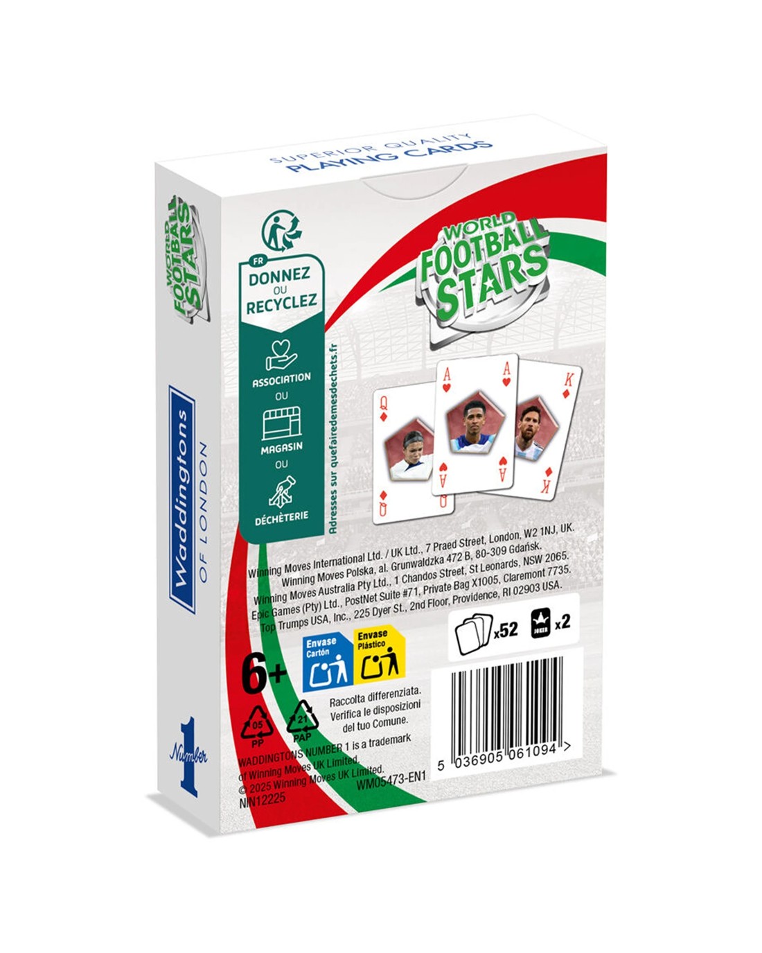 Celebrate the world of football with World Football Stars Waddingtons Number 1 Playing Cards! This deck features stunning illustrations of football legends from around the globe, making every hand you play a winning experience. Whether you're enjoying a game of poker, bridge, or any classic card game, these high-quality cards are the perfect way to combine your love for the beautiful game with hours of card-playing fun. With vibrant images of iconic players from top football leagues and teams, these cards are ideal for football fans, collectors, and card game enthusiasts. Whether you're playing with friends or family, World Football Stars Waddingtons Number 1 Playing Cards adds a competitive edge to every game.