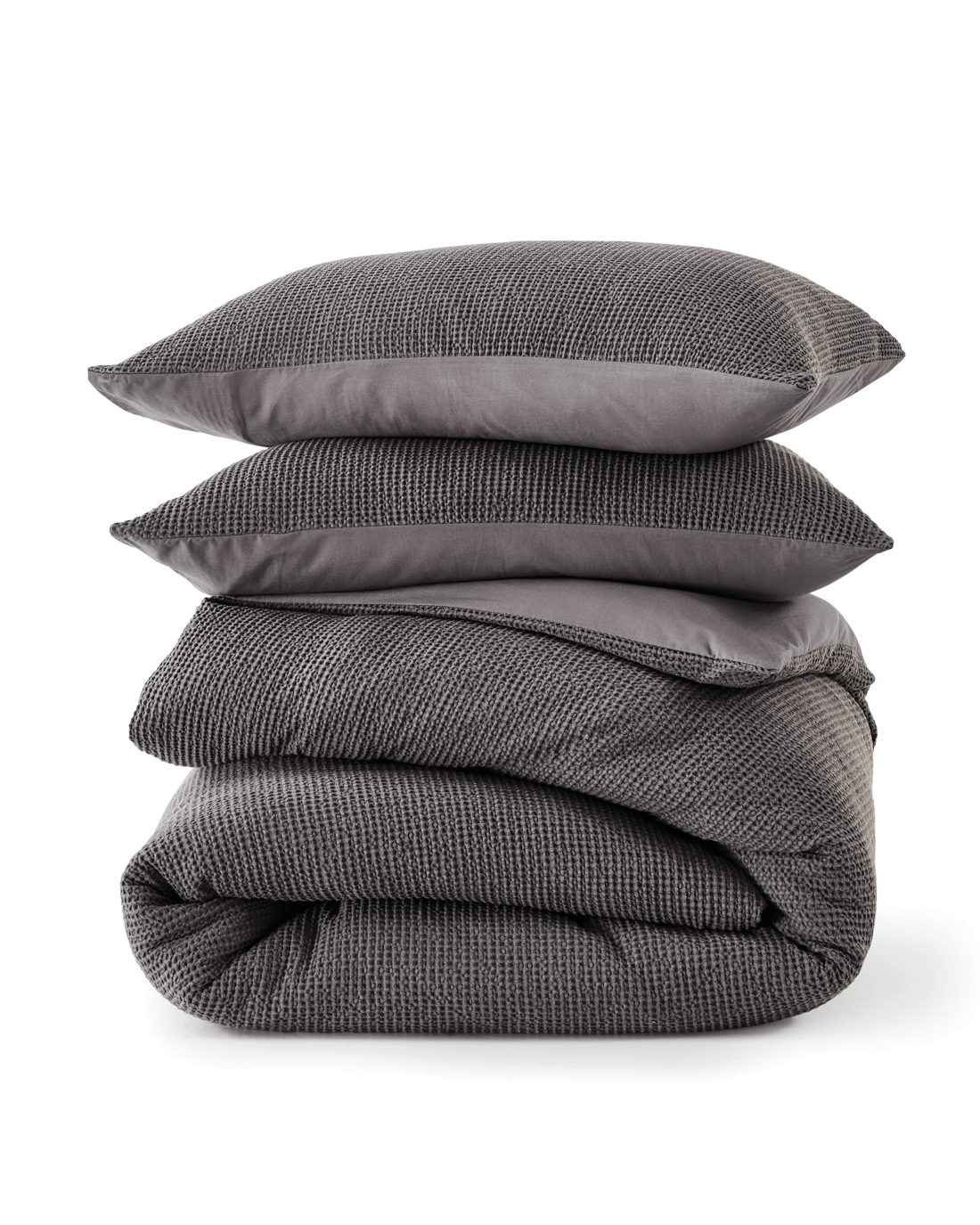 Waffle Stonewashed Cotton Quilt Cover Set - Super King Bed, Grey