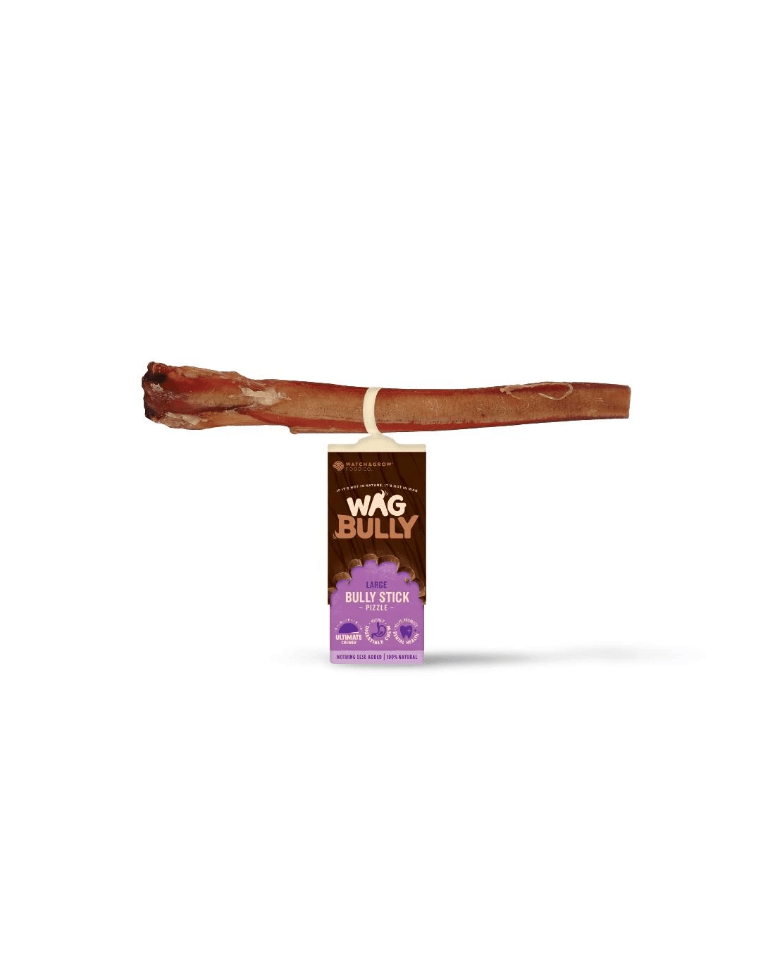 WAG Bully Sticks are long-lasting, single-ingredient chews made from beef pizzle.