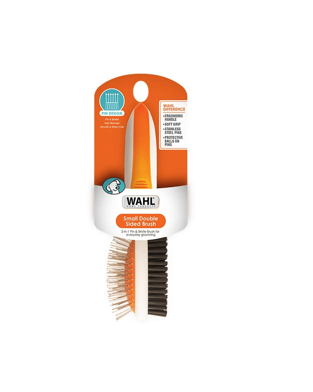 Wahl Orange-White Double Sided Pin-Bristle Brush Small is a premium pet care product designed for gentle, effective cleaning and conditioning. Ideal for regular grooming routines, this product promotes a healthy, shiny coat while ensuring comfort for your pet.