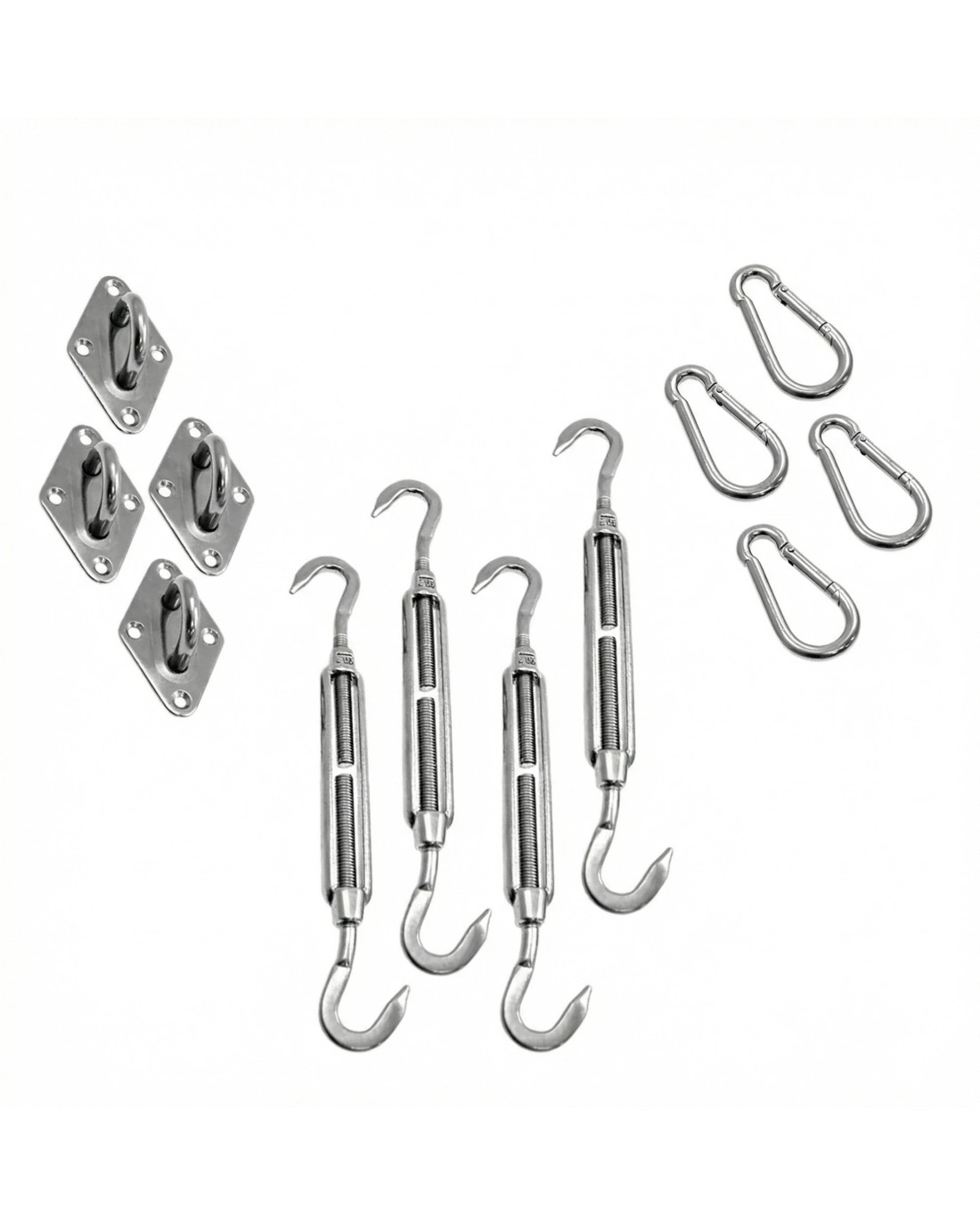 The following will be regarded as user caused damage to the product: over-tightening, stressing the material, storm and/or wind damage, wear caused by rubbing on roofs, external surfaces or tree branches, etc. No mountings or poles are supplied. Sizes shown are measured from the corner mounts. Installation should be at a minimum 25deg angle. Images are for illustration purposes only.