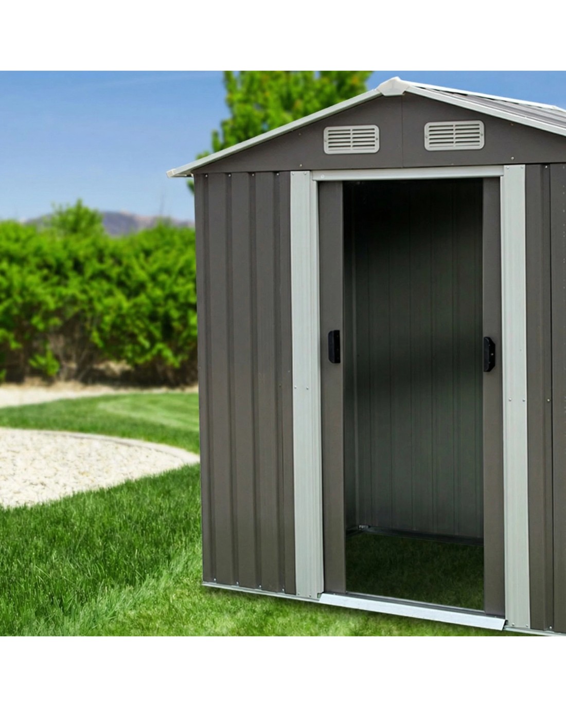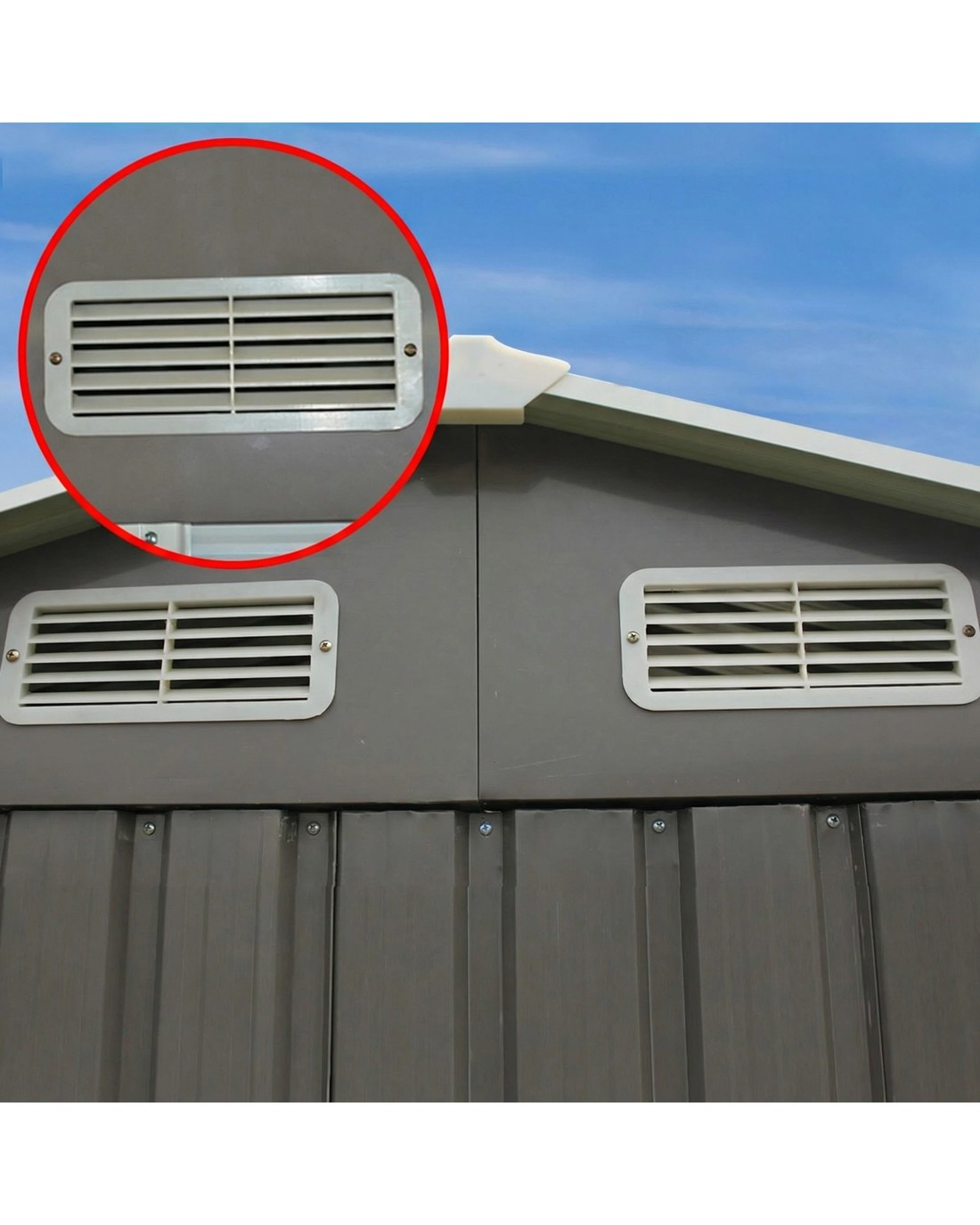 Constructed from galvanized steel and polypropylene this sturdy shed is weather and rust-resistant and designed to withstand the harshest weather elements. It features ventilation vents to let in air and natural light.