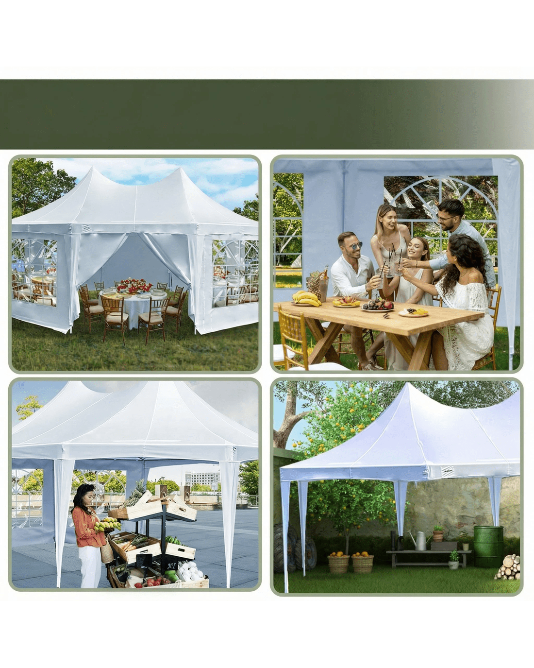 - Heavy-duty polyester roof and walls