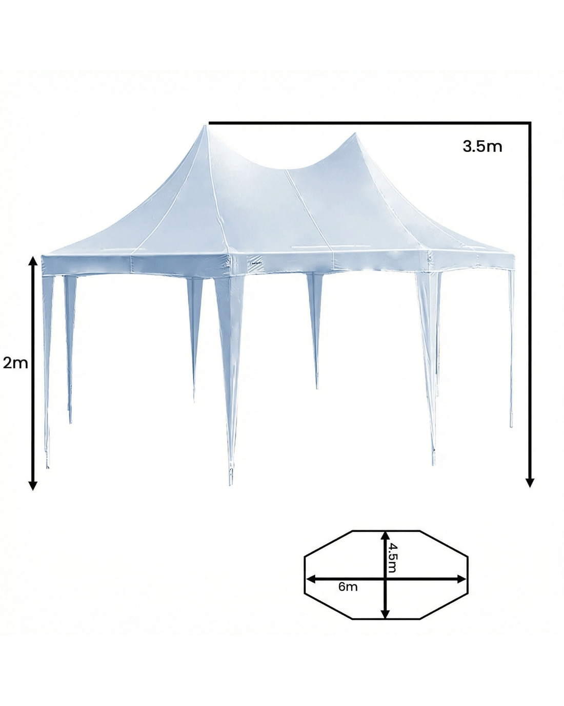 Holding up to 30 people at 6x4.5m, this elegant marquee comes complete church windows, removable sidewalls, and beautiful leg cloths. It also includes accessories such as bungee balls, nylon ropes, and strong pegs to handle windy weather.