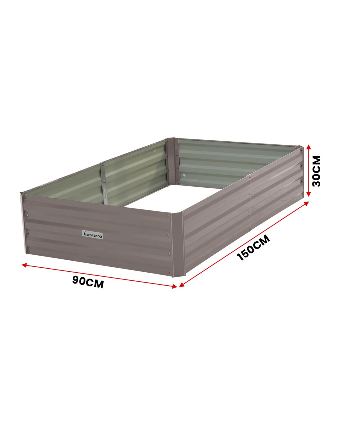 Wallaroo Galvanized Steel Raised Garden Bed 150 x 90 x 30cm Plants Vegetables Herbs Flowers - Grey