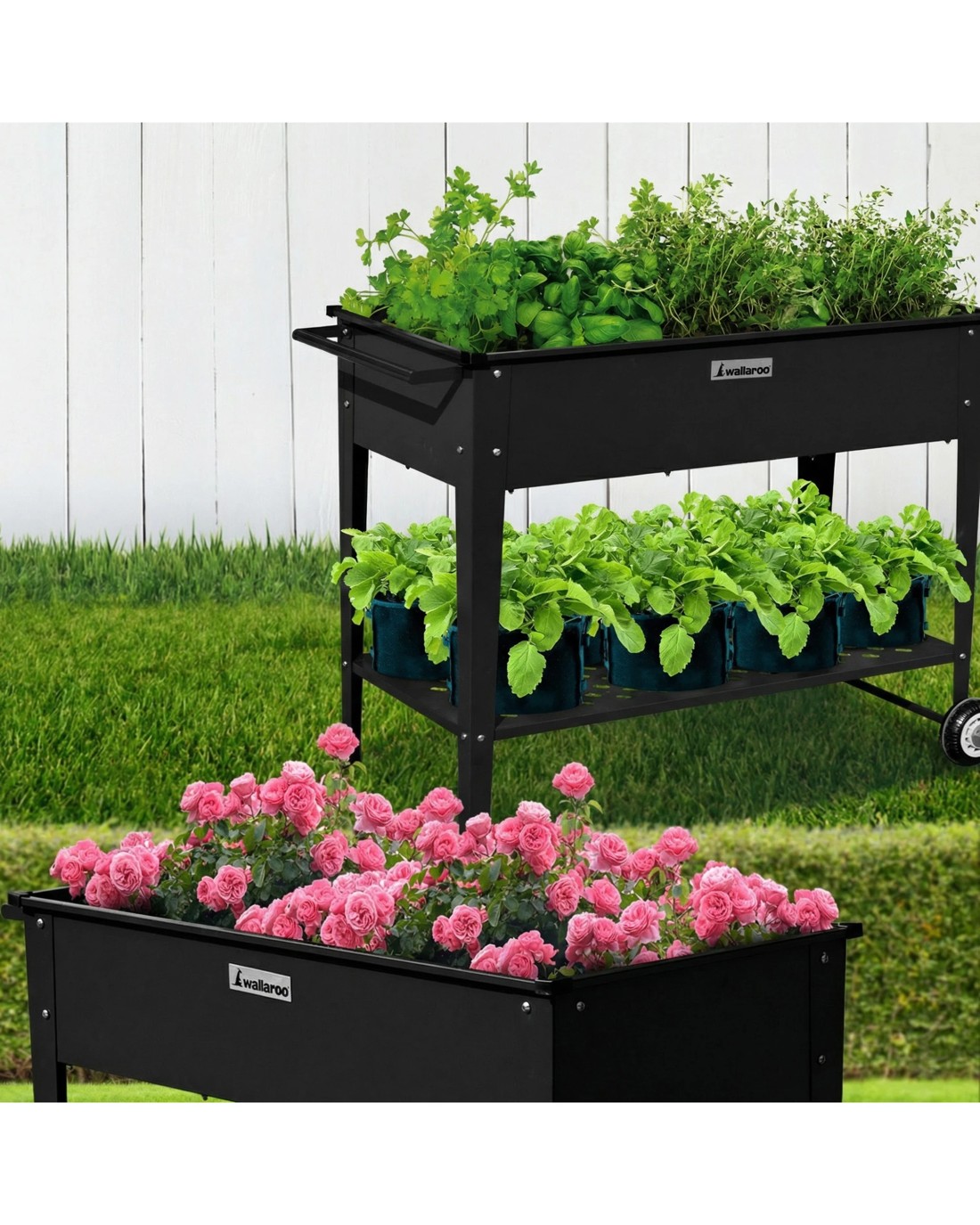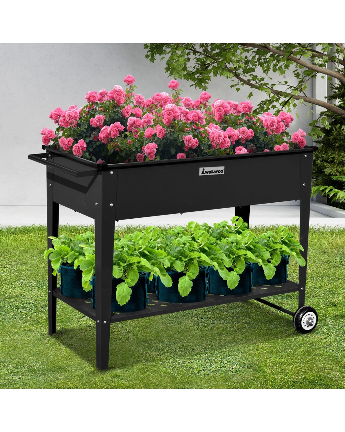 Sold by Klika GroupWallaroo Garden Bed Cart Raised Planter Box Wheels Steel Storage Plants Shelf - Black
