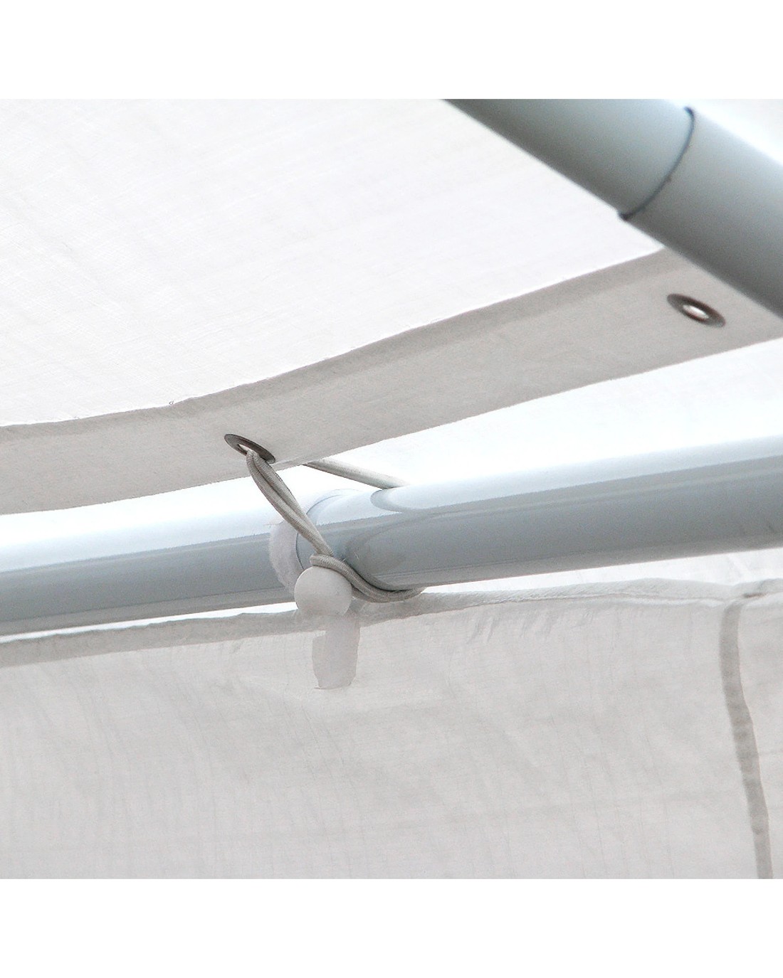 Due to the size of this item it is not possible to determine the type of fixing that may be required in all circumstances and uses. It is important for the user to determine how and where the item is used and to be aware that the structure needs to be adequately secured to prevent damage to the structure and/or injury to people due to wind. In some circumstances (eg: wind-sheltered courtyards) it may be adequate to use sandbags and light guy ropes to secure the item. The user must keep in mind that this item has a large surface area and may need to be guyed down to other fixed structures, heavy sandbags, or a combination of both to prevent damage from wind. The adequate measures required to secure the structure under the circumstances of its use are left to the user to decide.